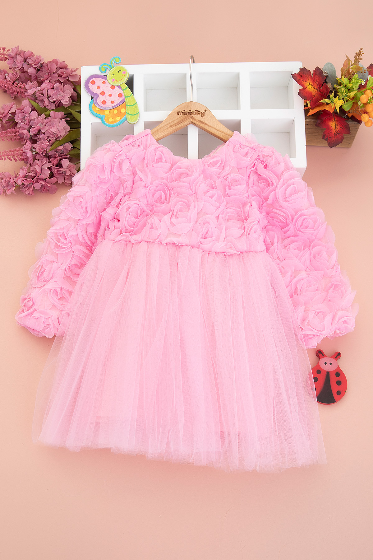 Kız Çocuk Güllü Uzun Kollu Elbise - 1020 (3-8 Yaş)