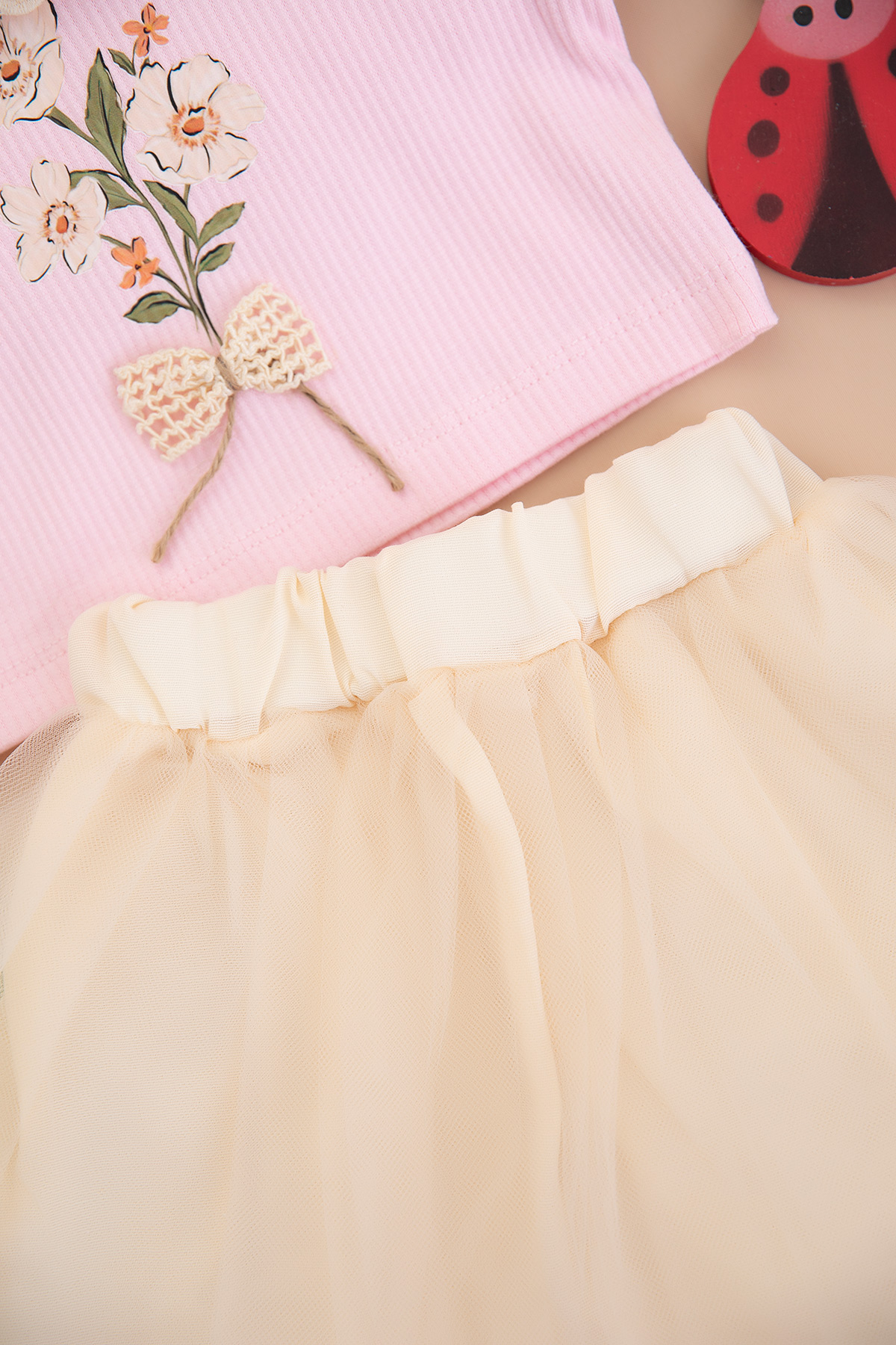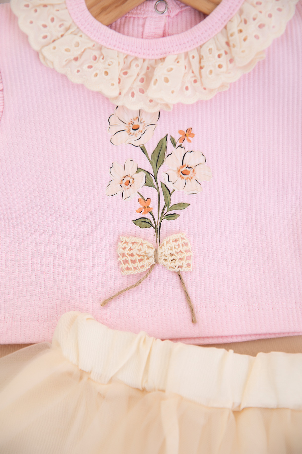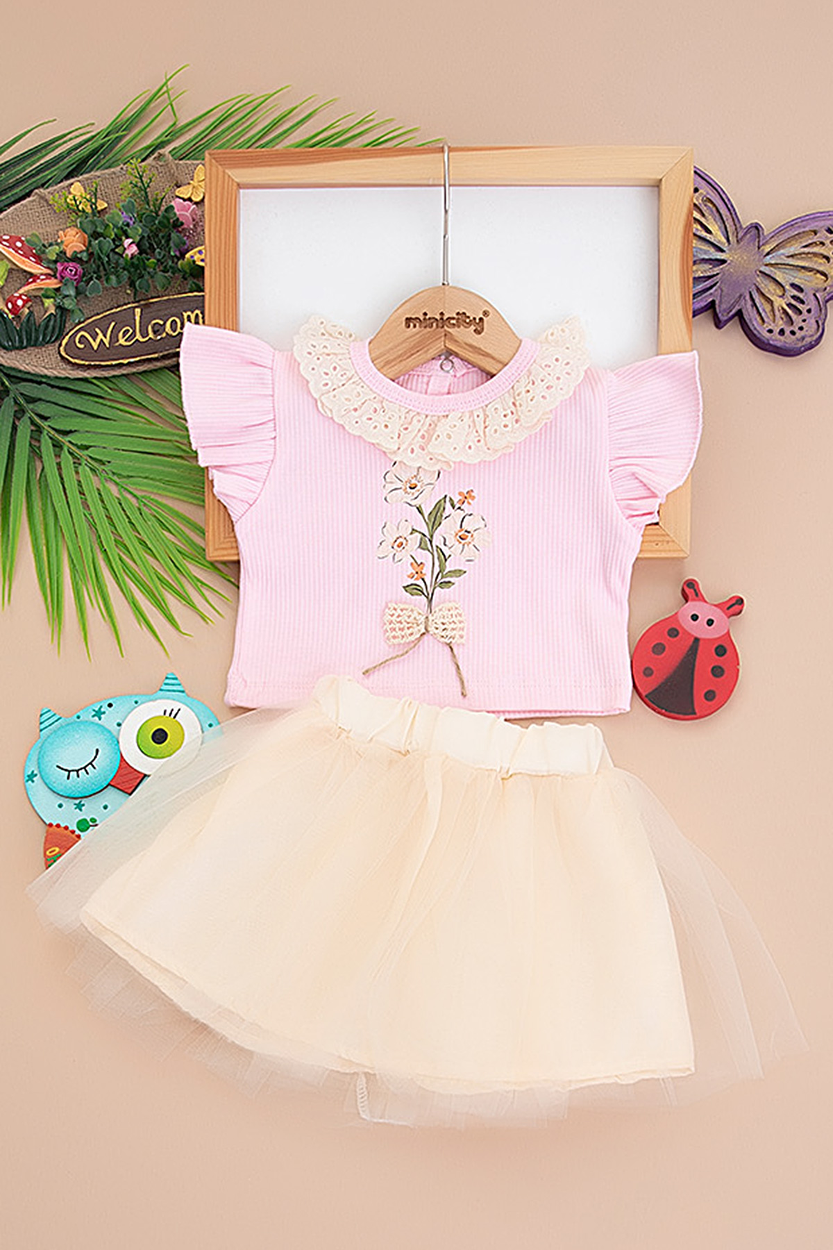 Kız Çocuk Güpür Yakalı Tütü Etek Takım - 1516 (1-3 Yaş)