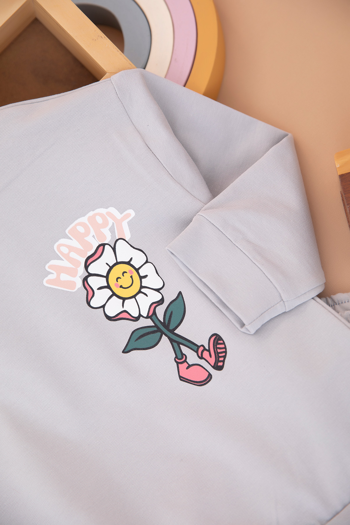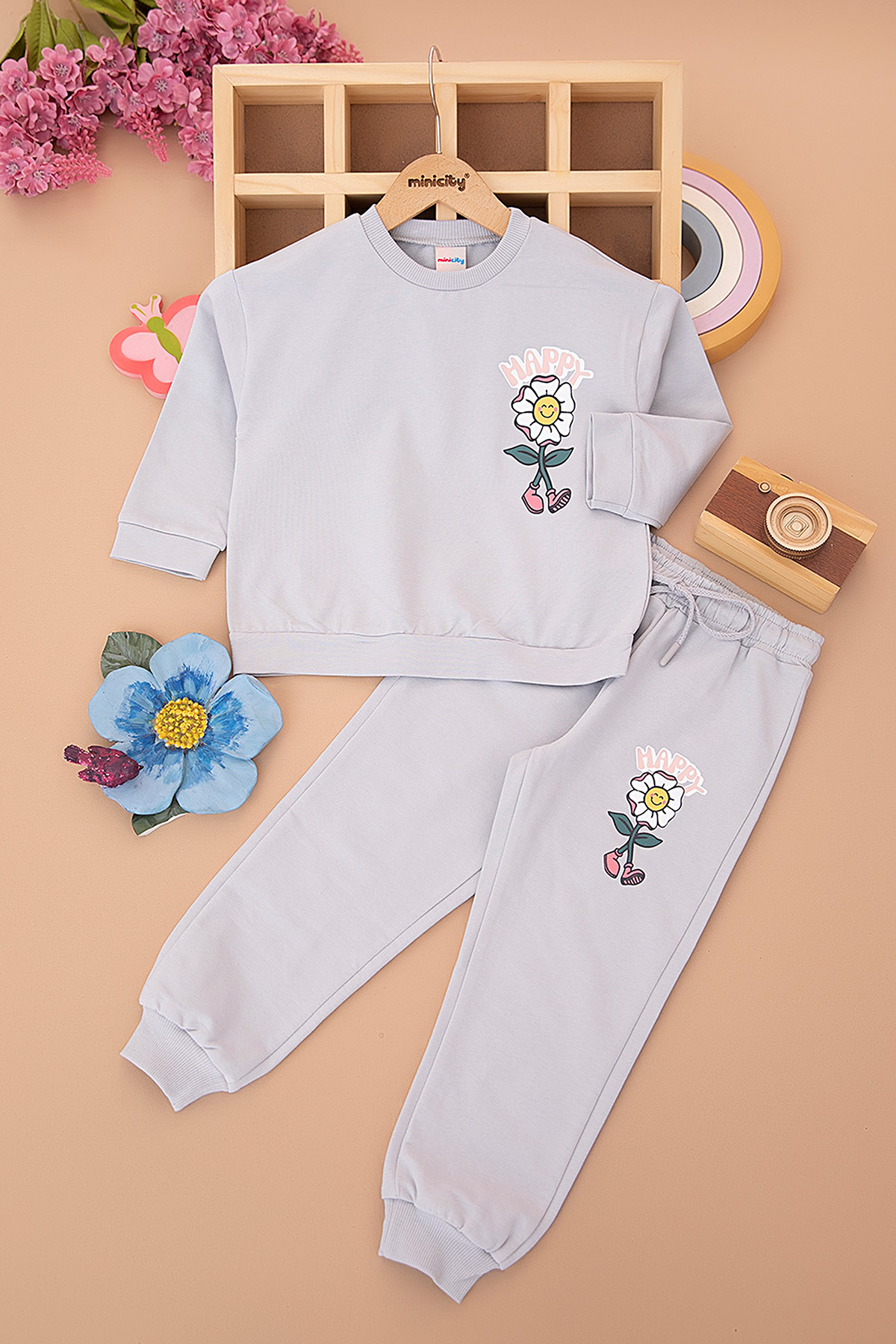 Kız Çocuk Happy Baskılı Takım - 9054 (3-7 Yaş)