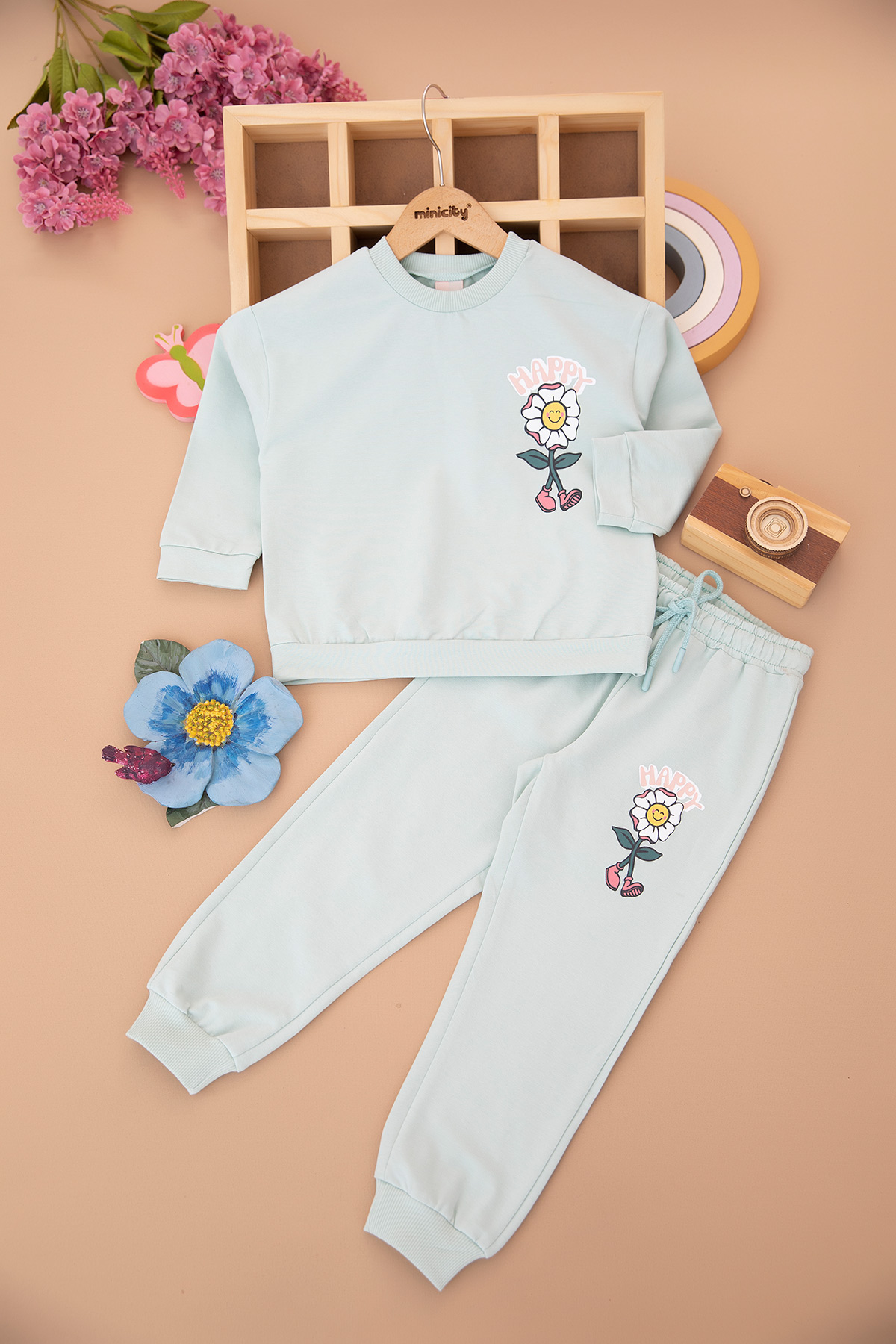Kız Çocuk Happy Baskılı Takım - 9054 (3-7 Yaş)