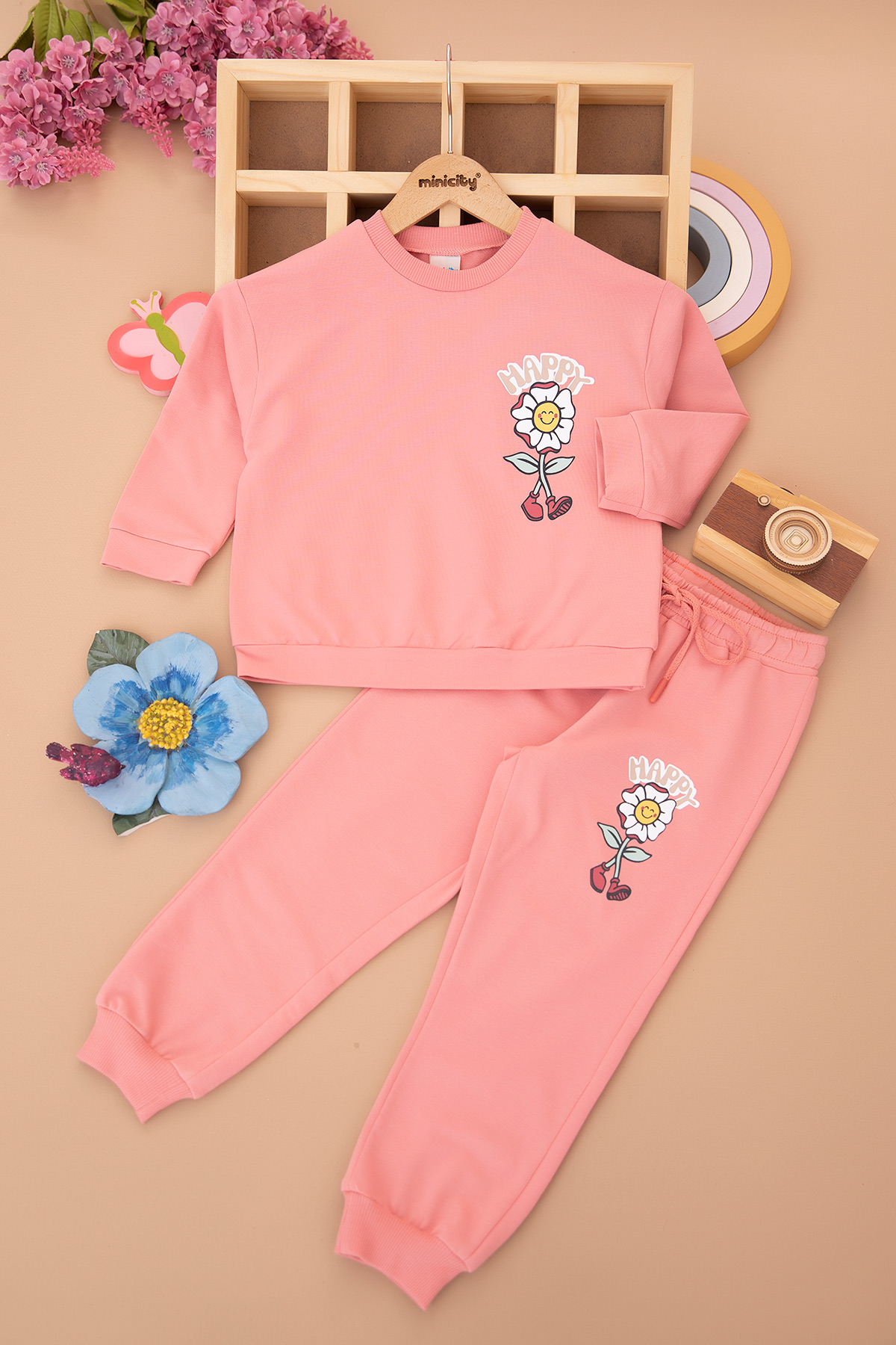 Kız Çocuk Happy Baskılı Takım - 9054 (3-7 Yaş)