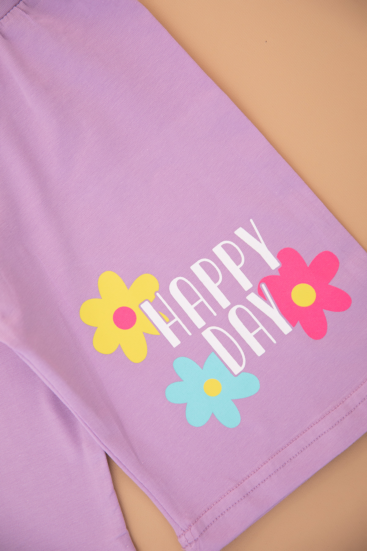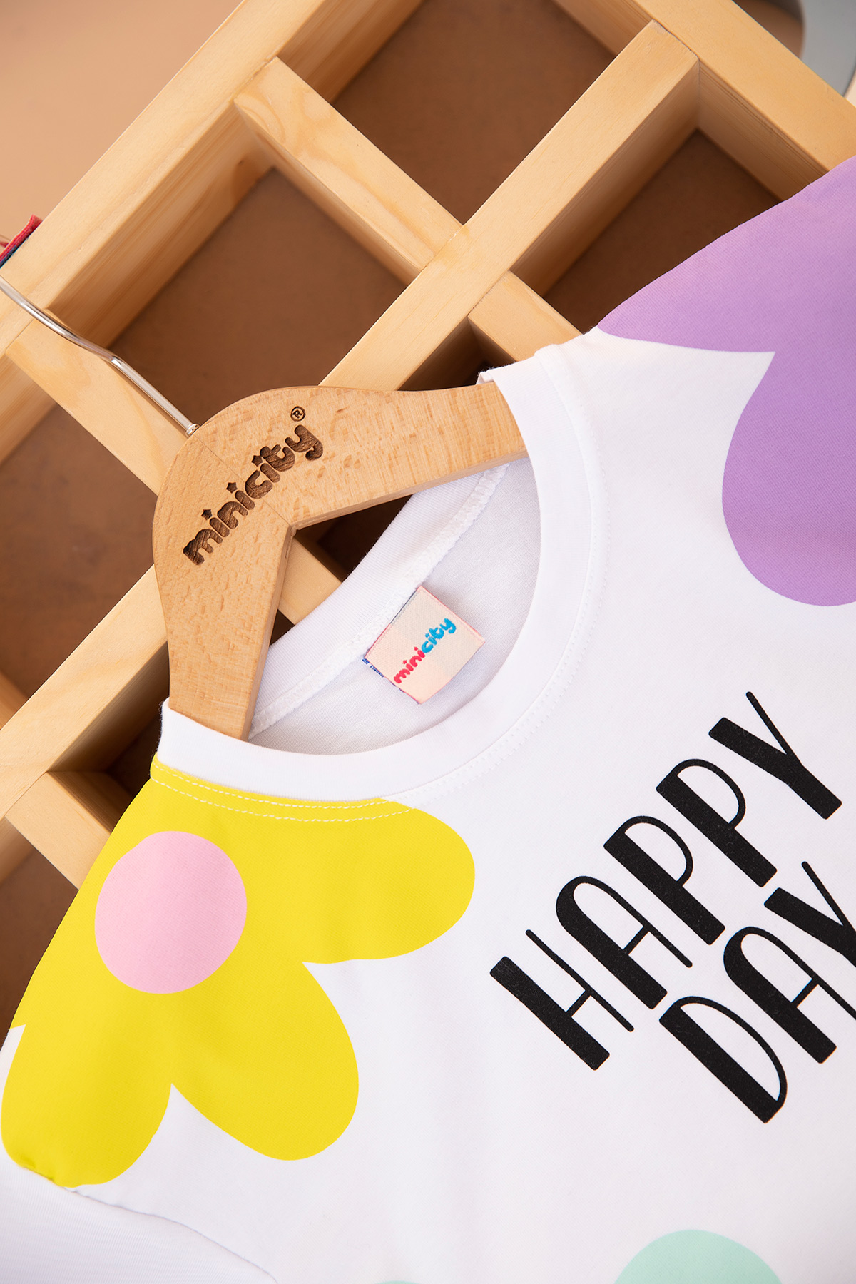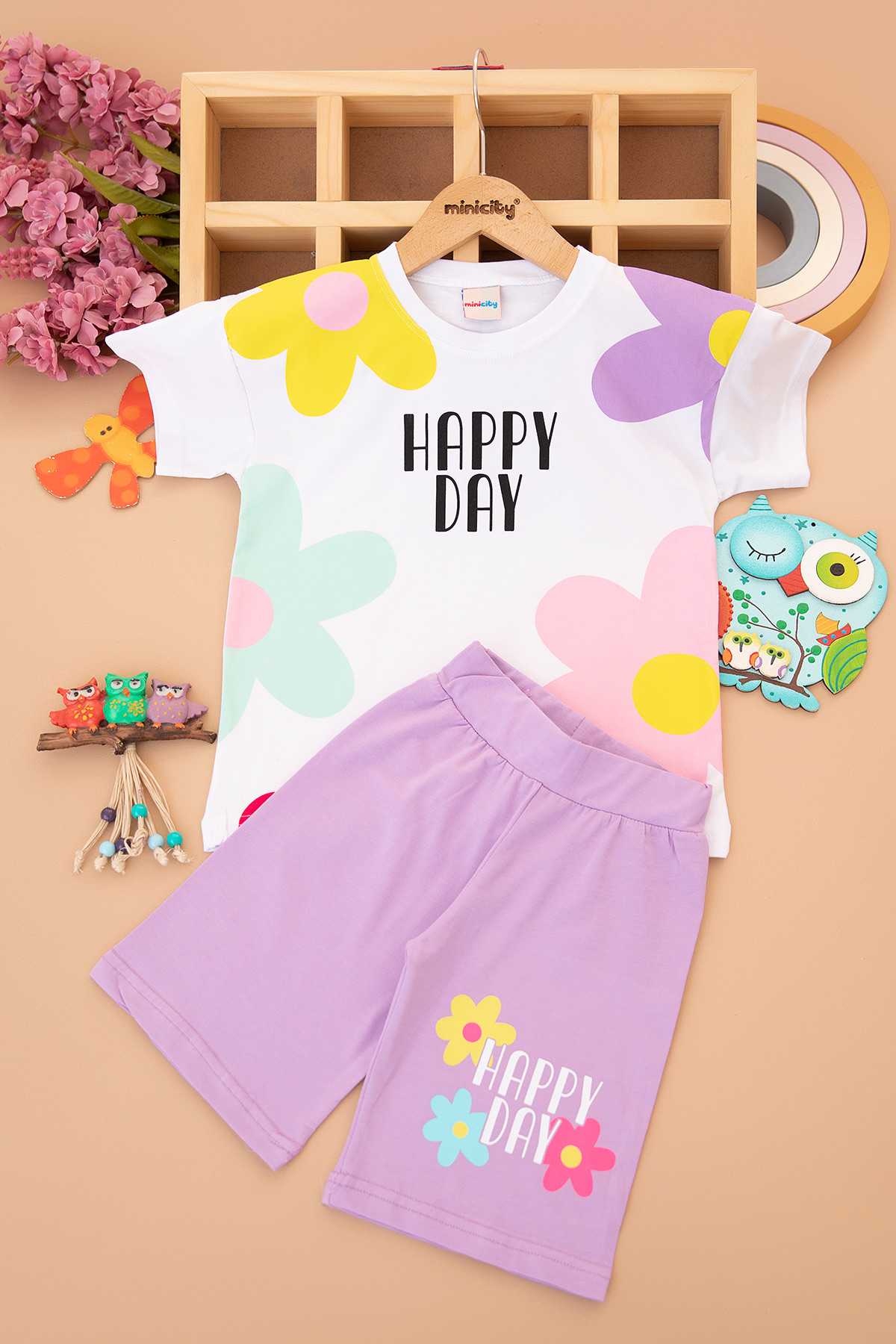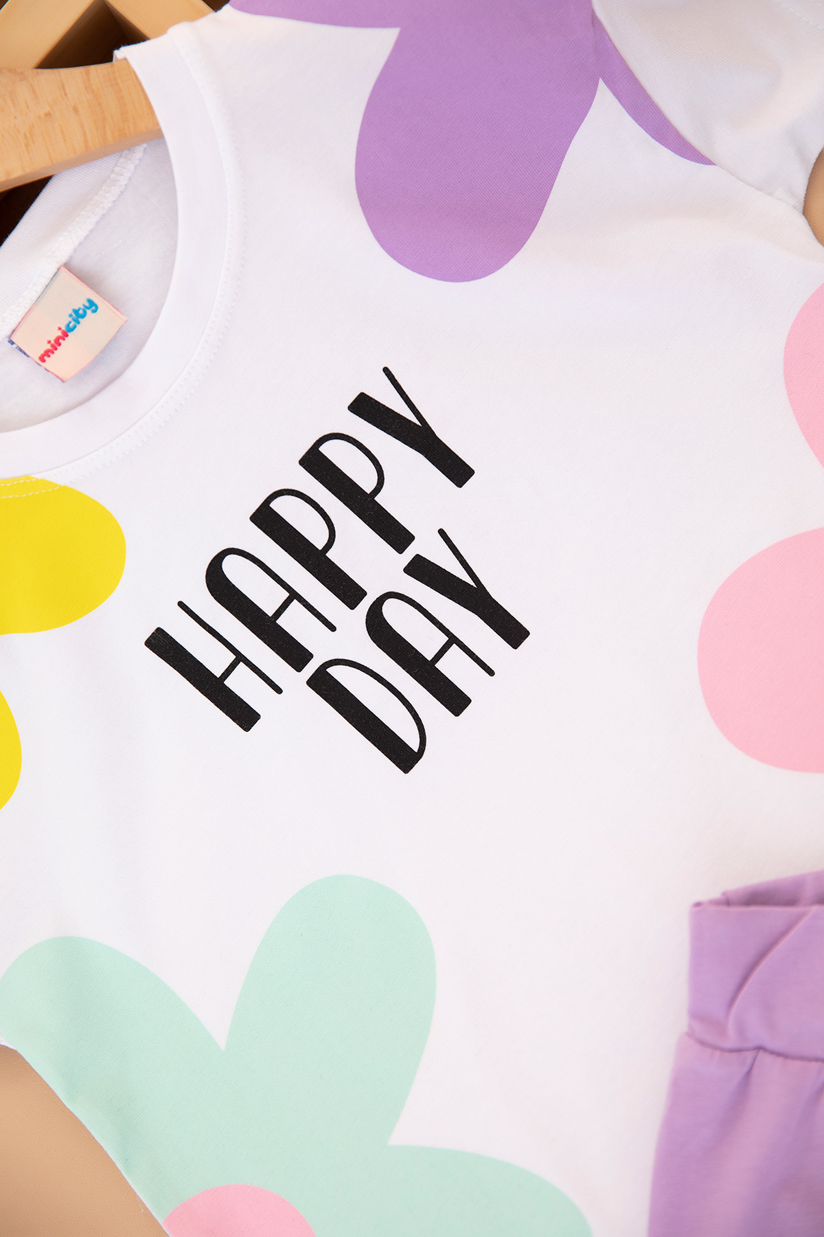 Kız Çocuk Happy Day Baskılı Şortlu Takım (4-10 Yaş)