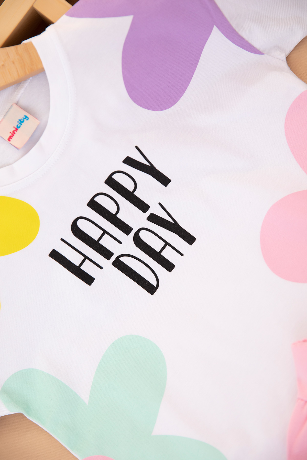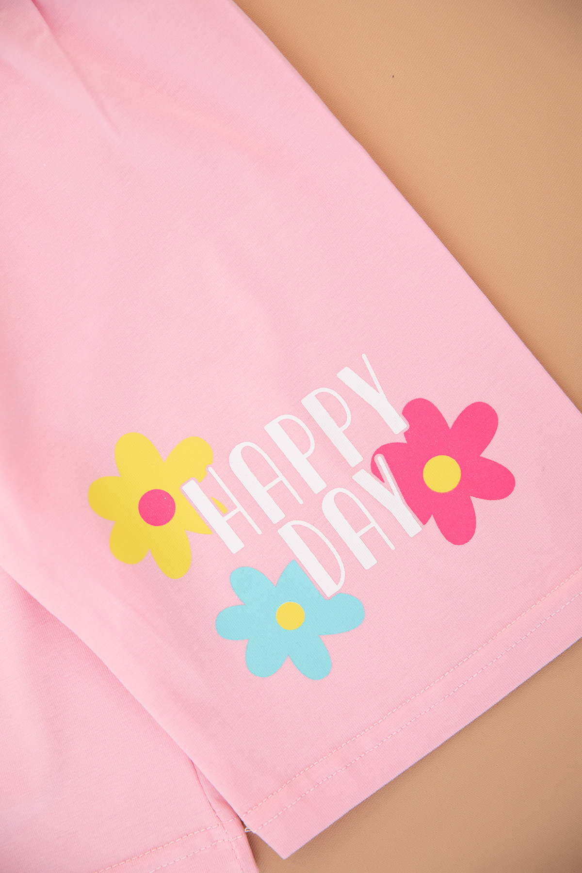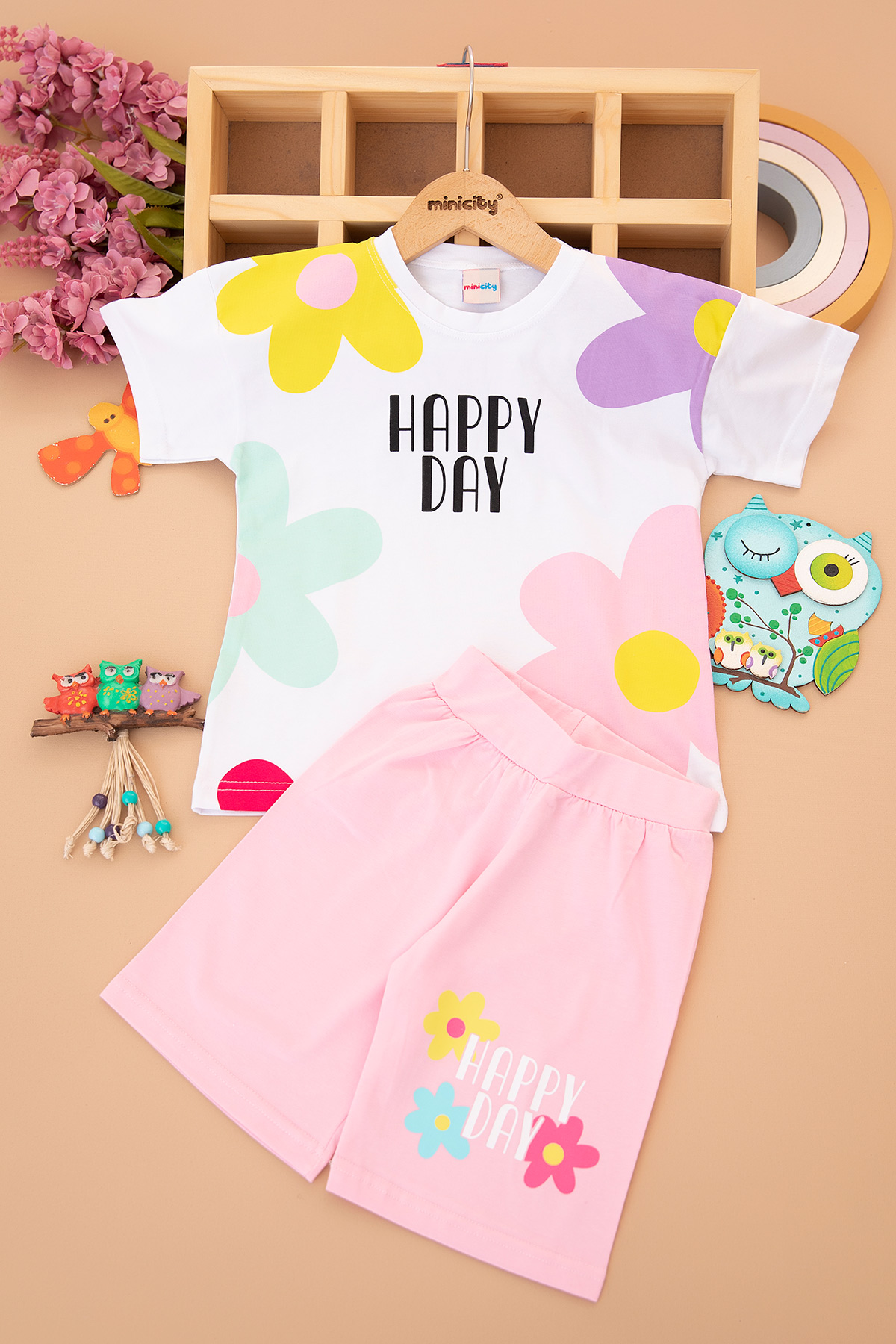 Kız Çocuk Happy Day Baskılı Şortlu Takım (4-10 Yaş)