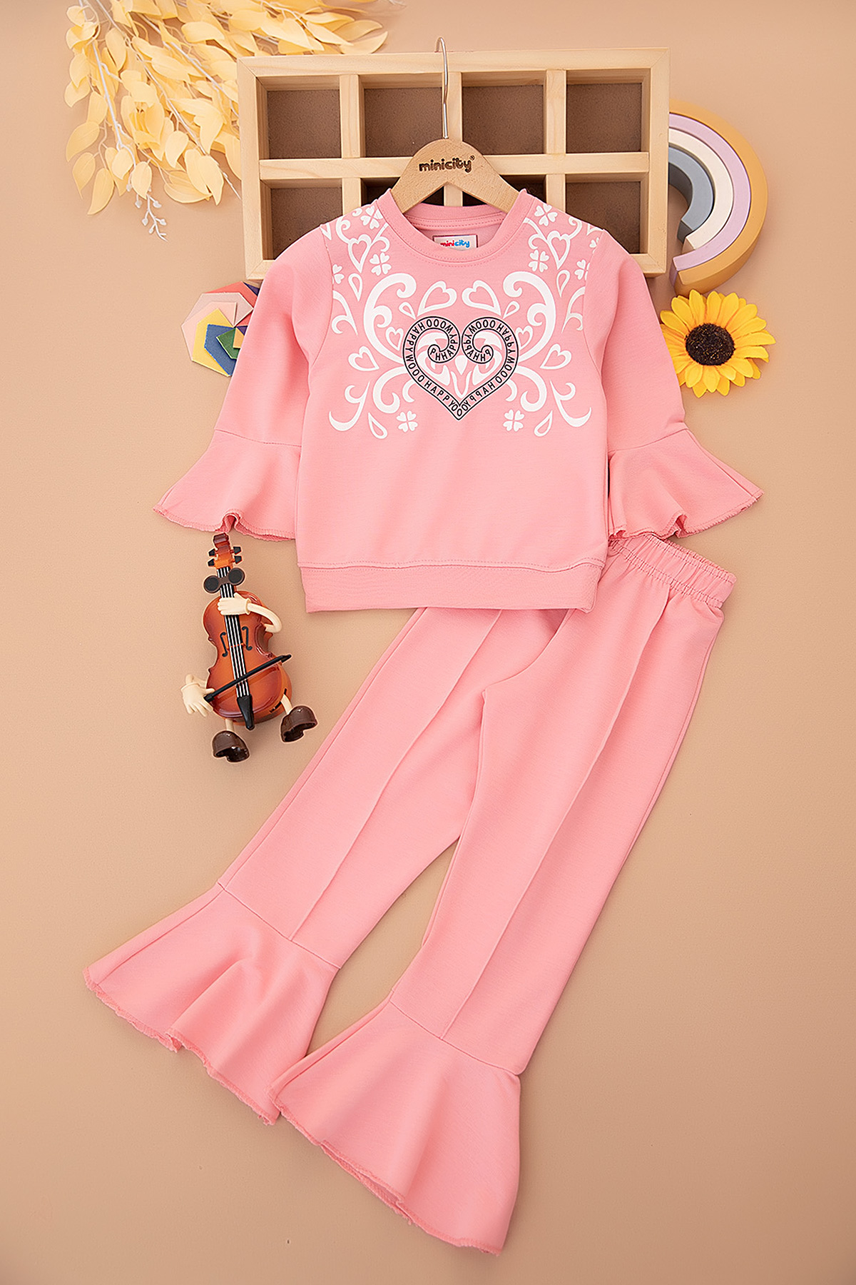 Kız Çocuk Happy Kalp Baskılı Takım - 190065 (4-11 Yaş)