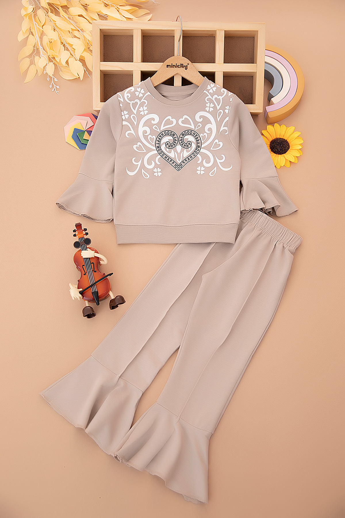 Kız Çocuk Happy Kalp Baskılı Takım - 190065 (4-11 Yaş)