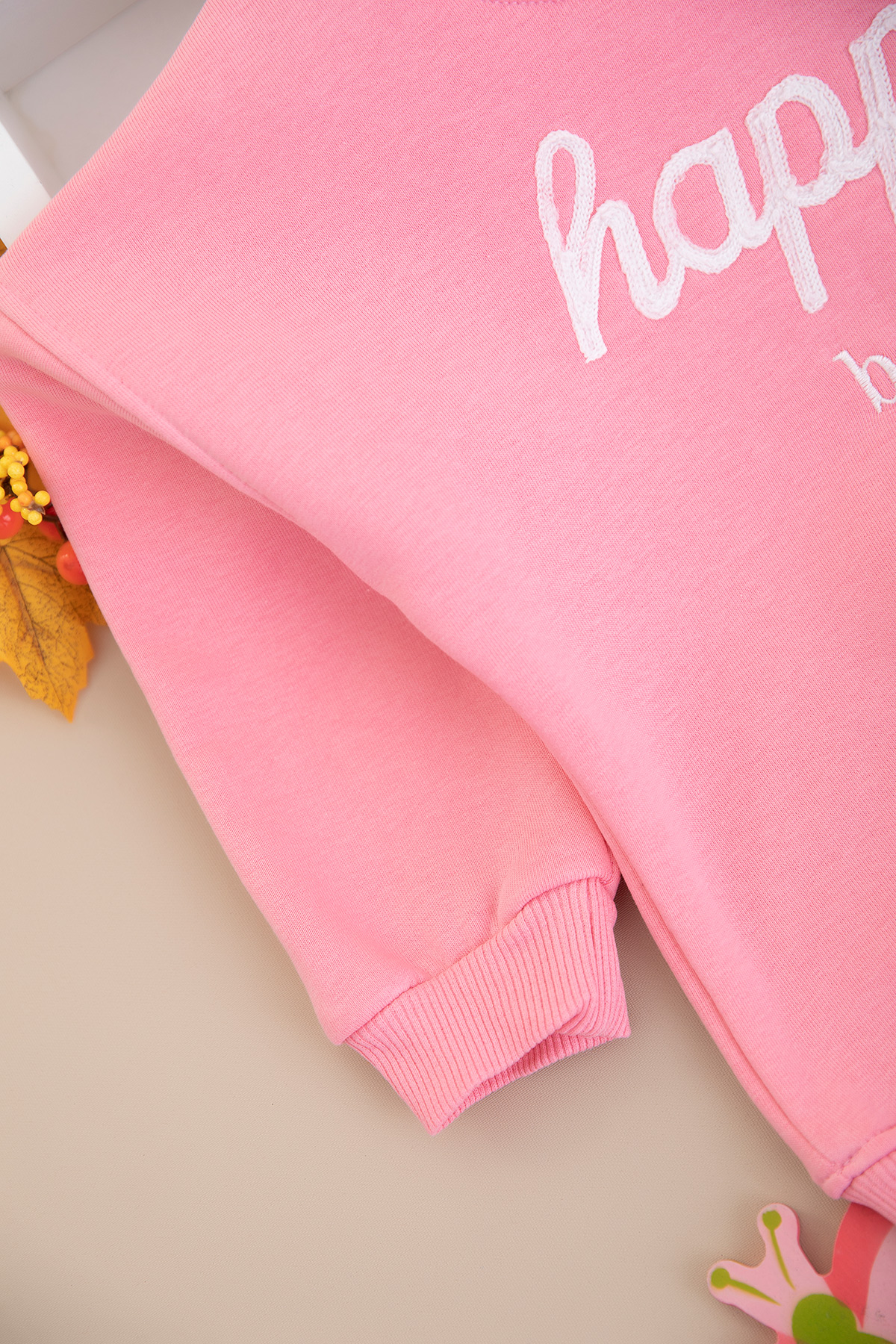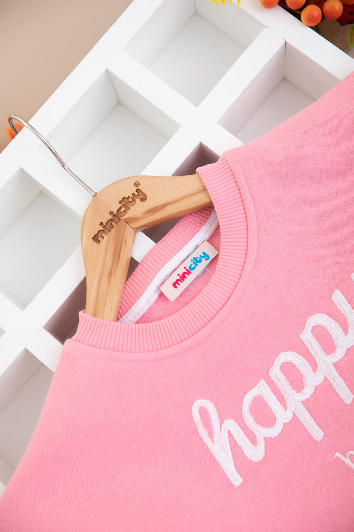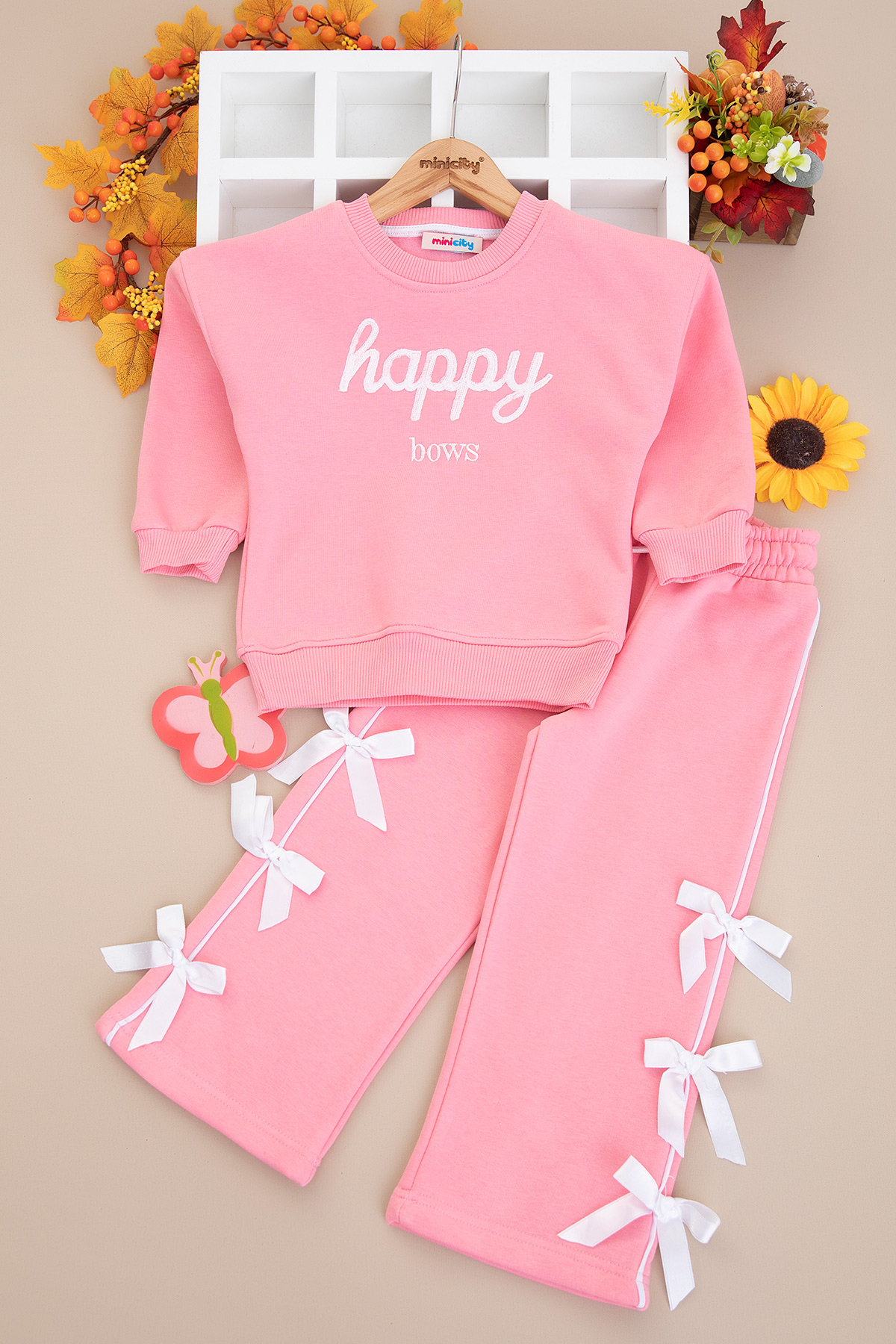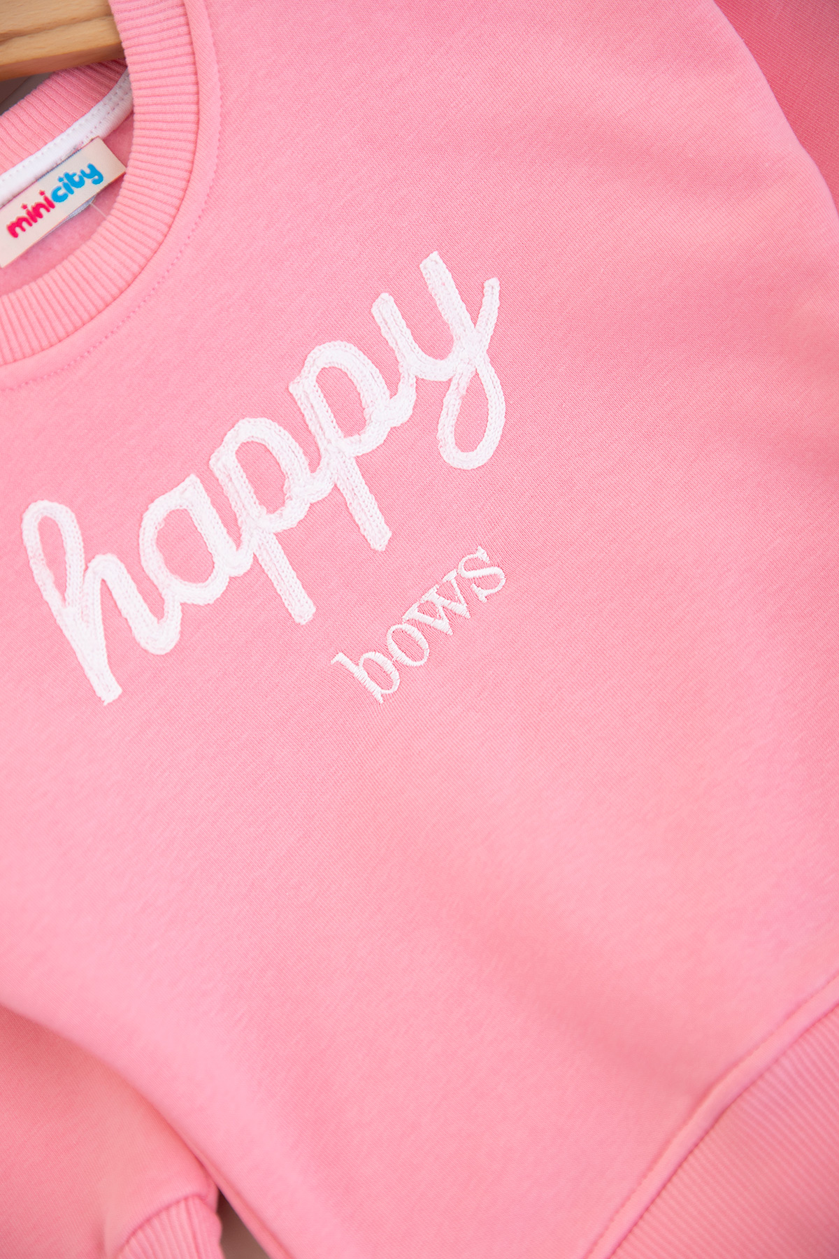 Kız Çocuk Happy Nakışlı Fiyonklu Üçip Takım - 5040 (3-10 Yaş)