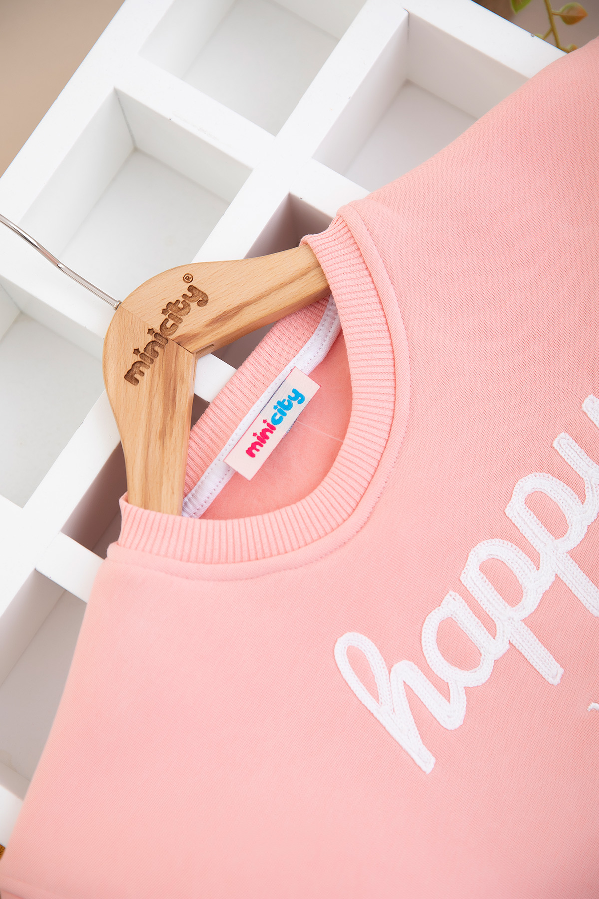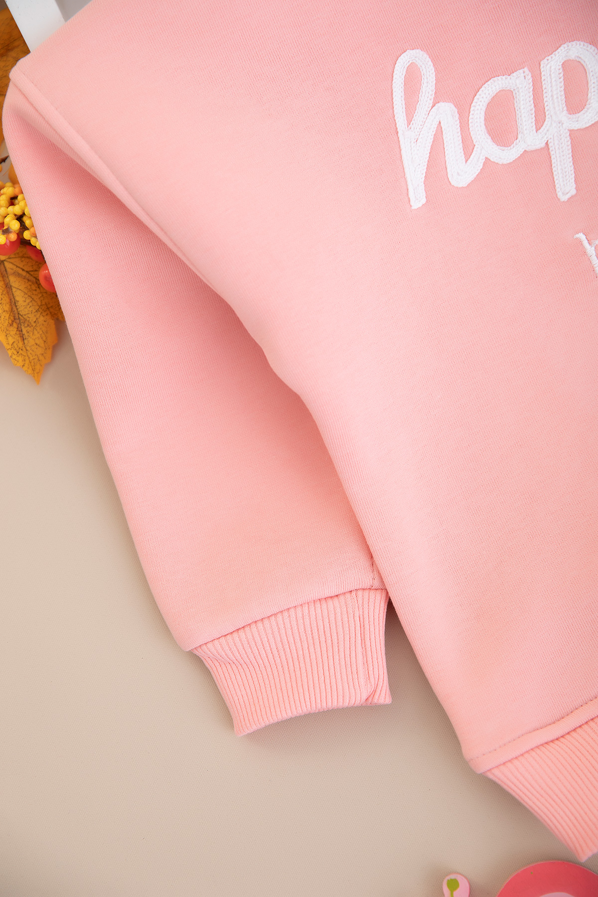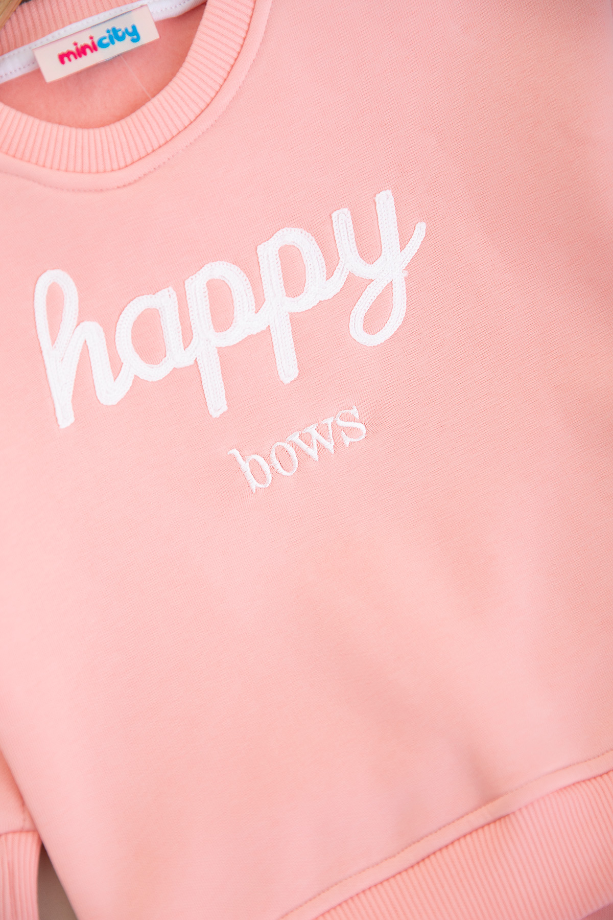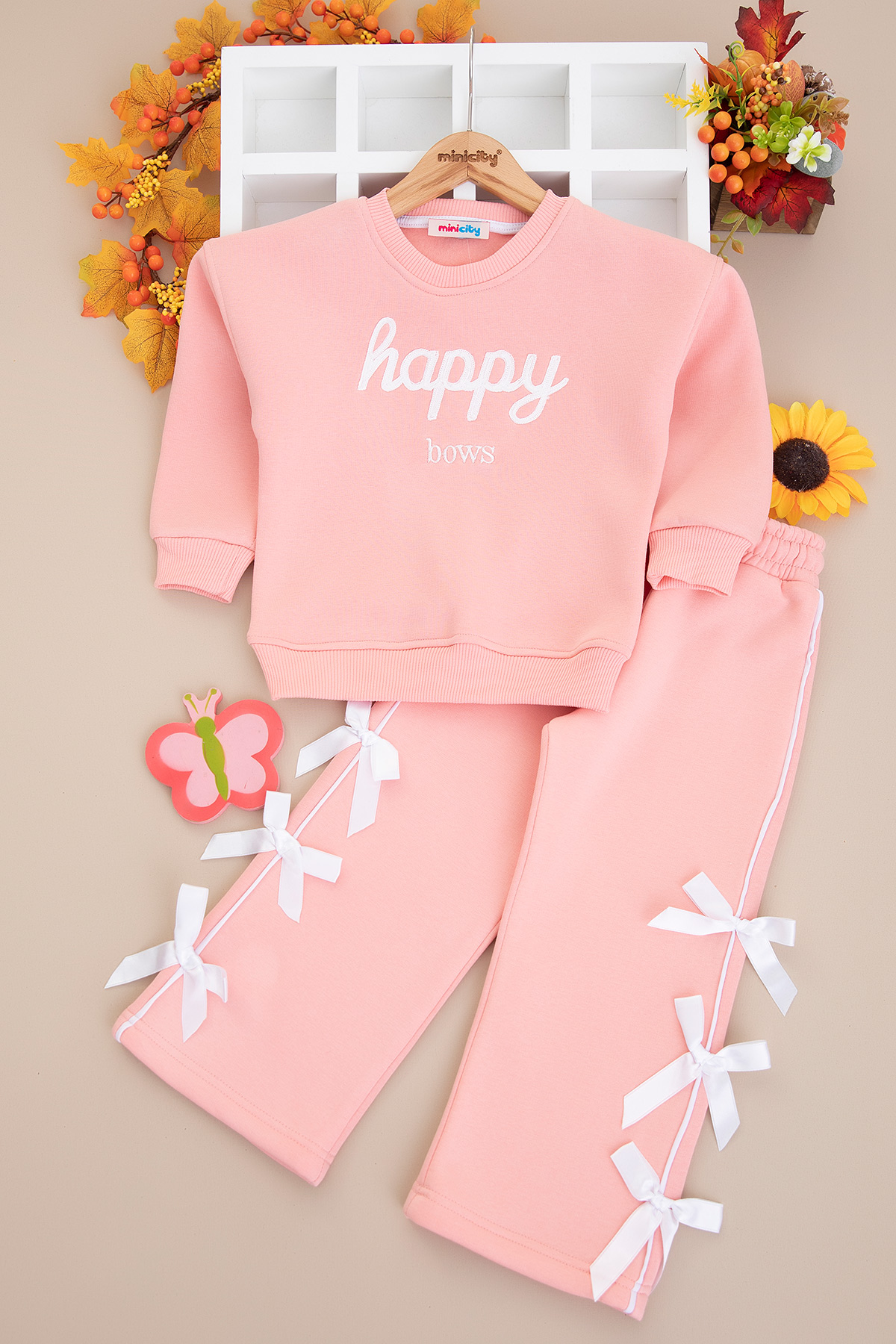 Kız Çocuk Happy Nakışlı Fiyonklu Üçip Takım - 5040 (3-10 Yaş)