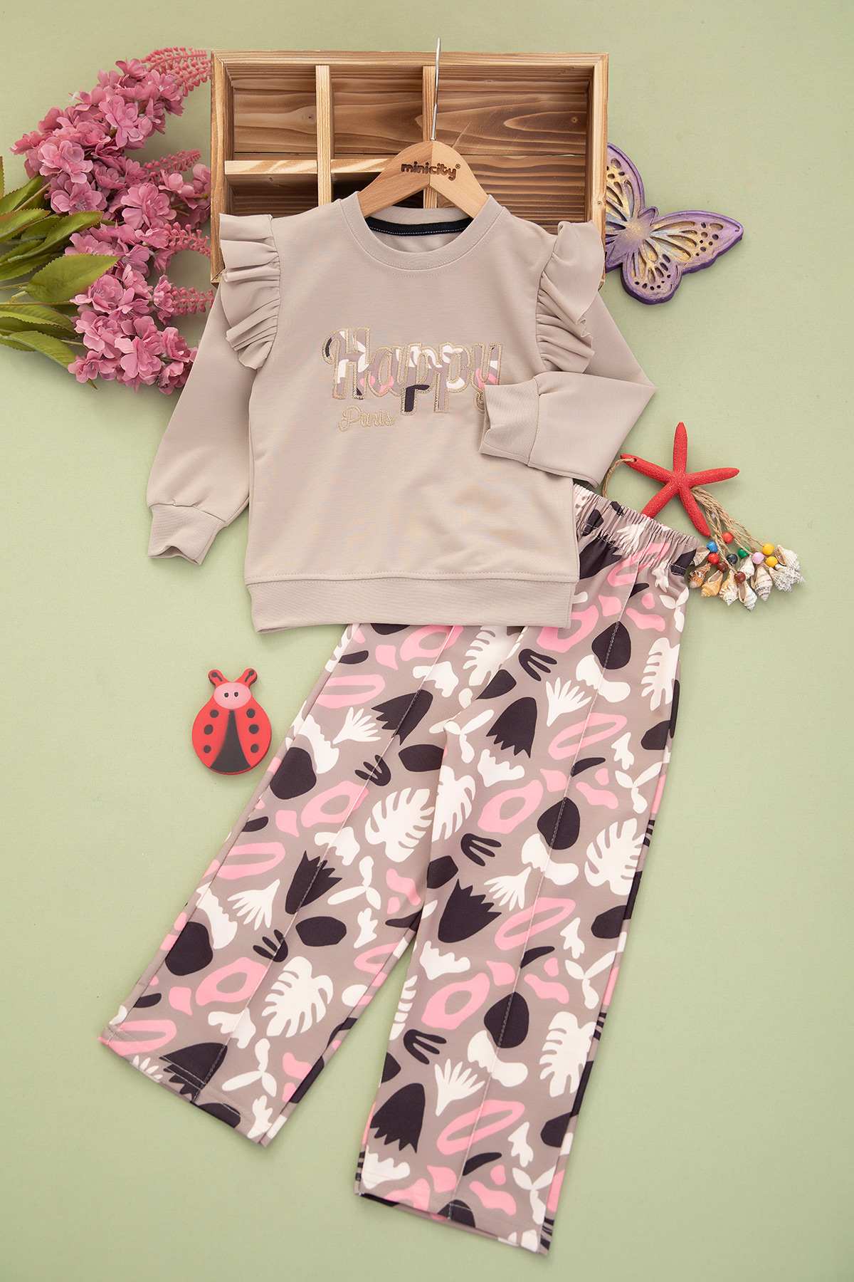 Kız Çocuk Happy Nakışlı Takım - 190030 (4-11 Yaş)