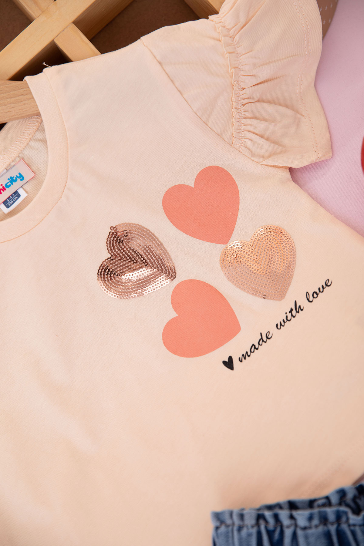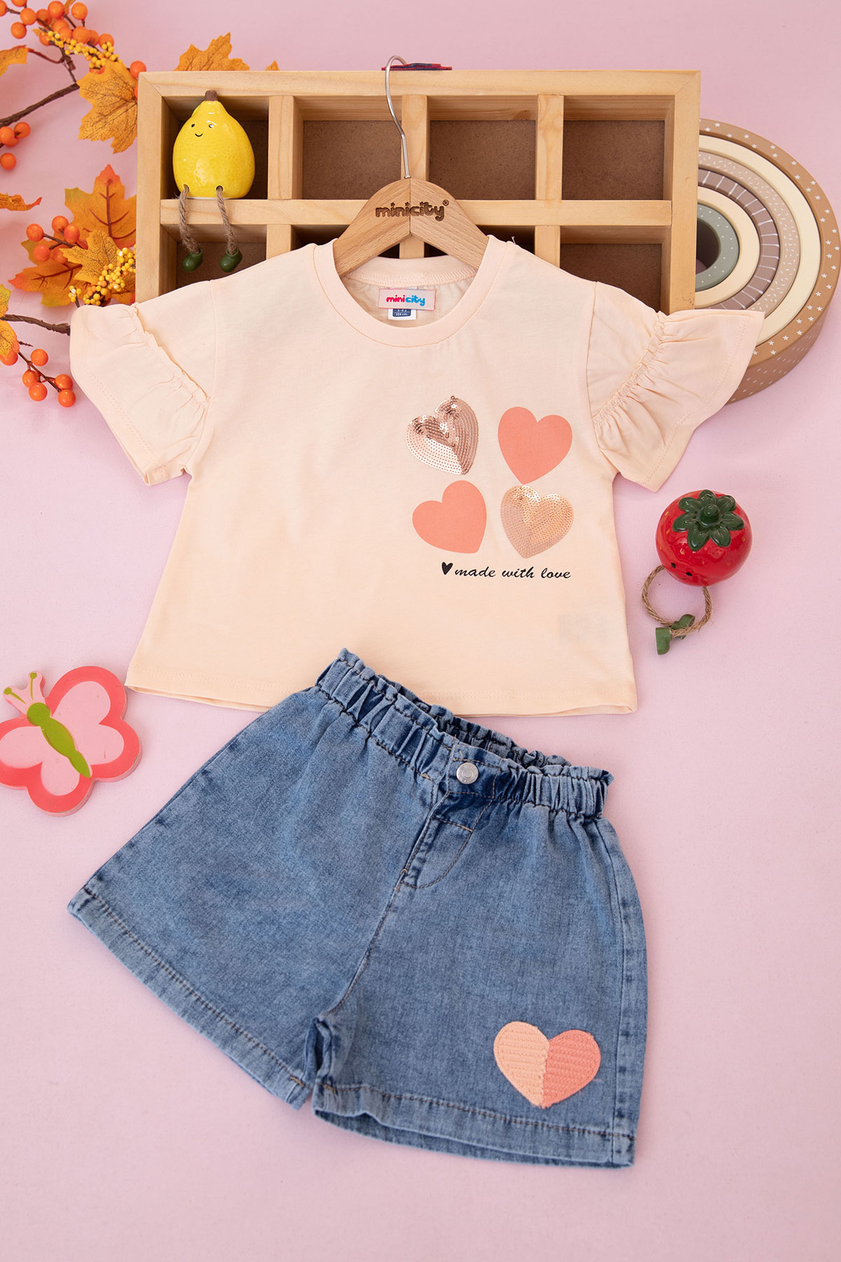 Kız Çocuk Hear Kalpli Şortlu Takım - 326114 (3-7 Yaş)