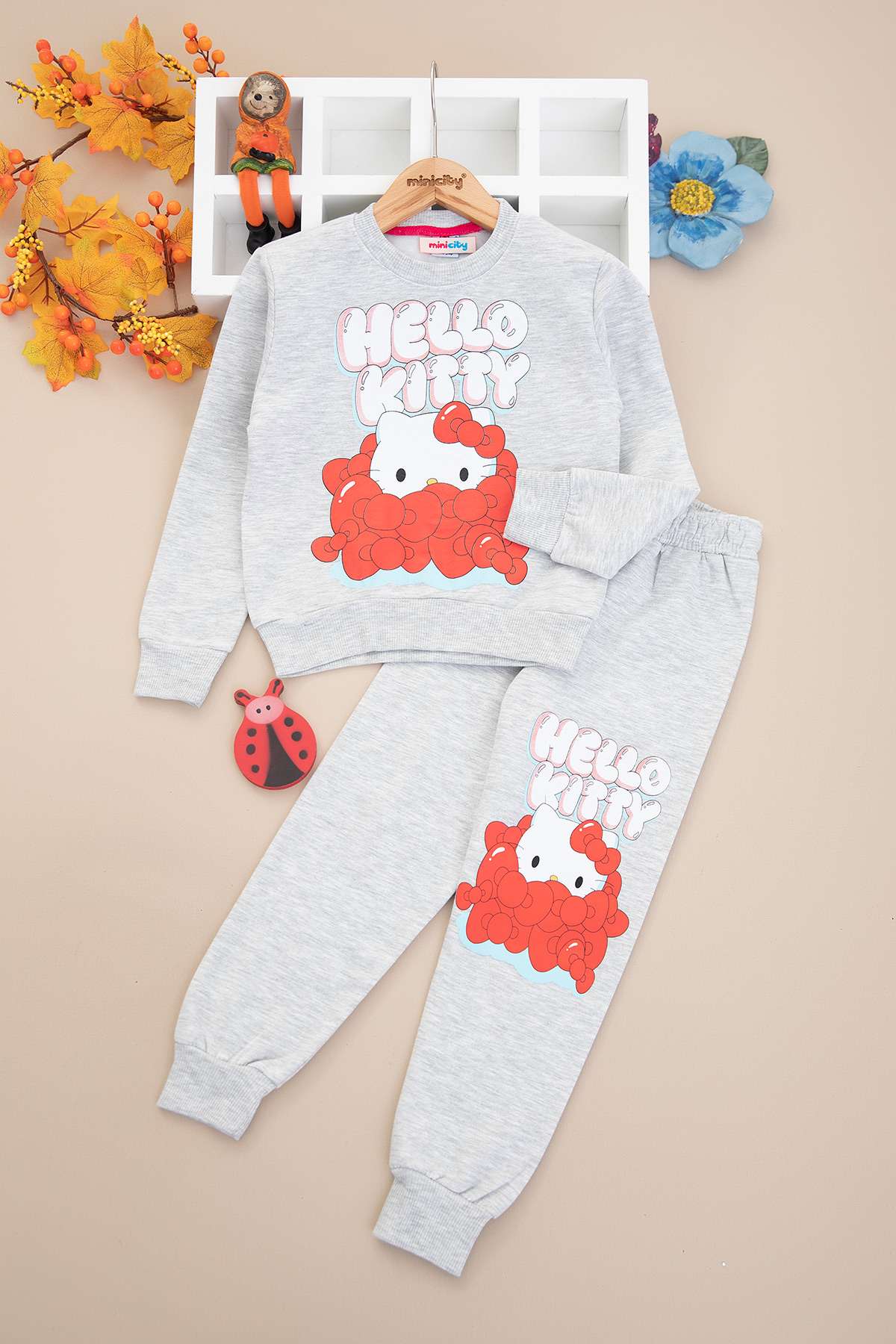 Kız Çocuk Hello Kitty Baskılı Şardonlu Takım - 8006 (4-10 Yaş)