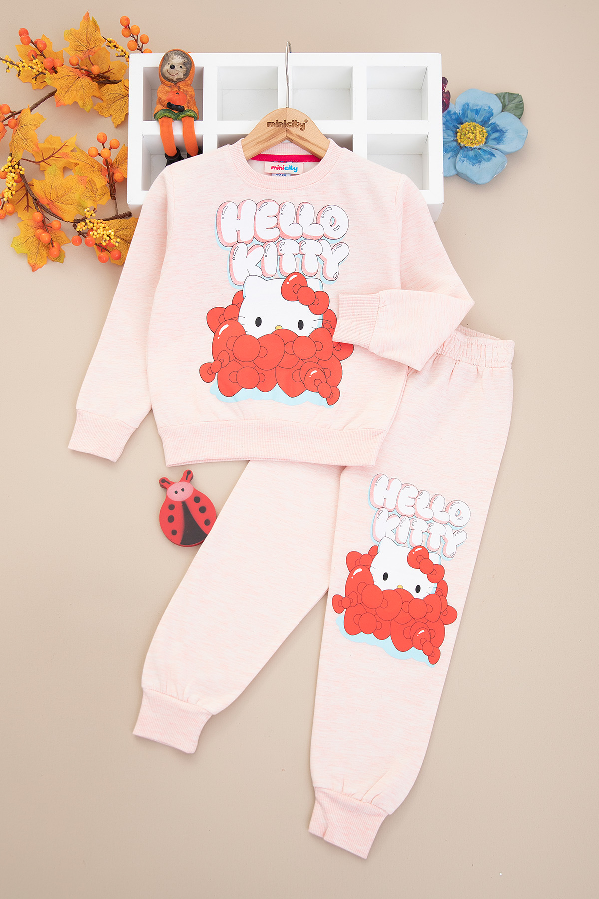 Kız Çocuk Hello Kitty Baskılı Şardonlu Takım - 8006 (4-10 Yaş)