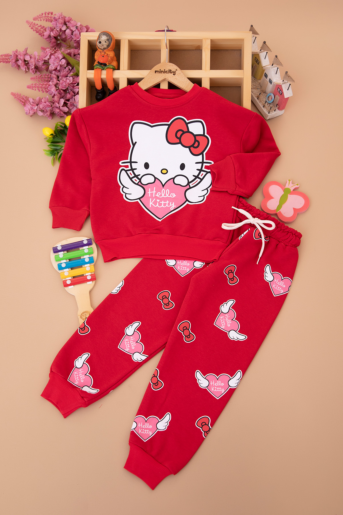 Kız Çocuk Hello Kitty Baskılı Üçip Takım - 4004 (4-10 Yaş)