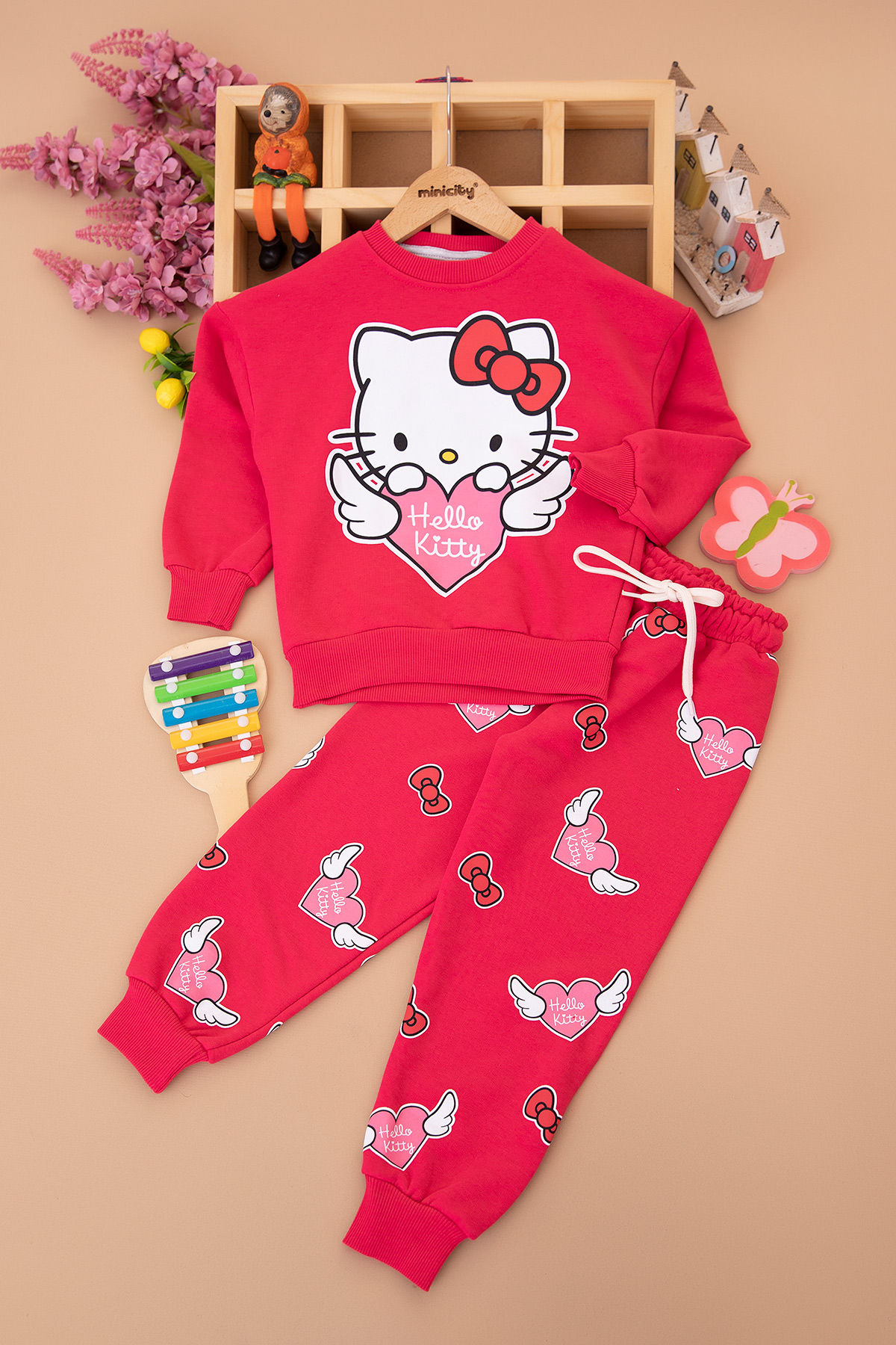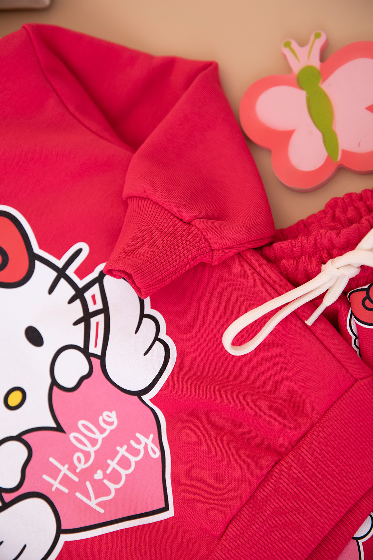 Kız Çocuk Hello Kitty Baskılı Üçip Takım - 4004 (4-10 Yaş)
