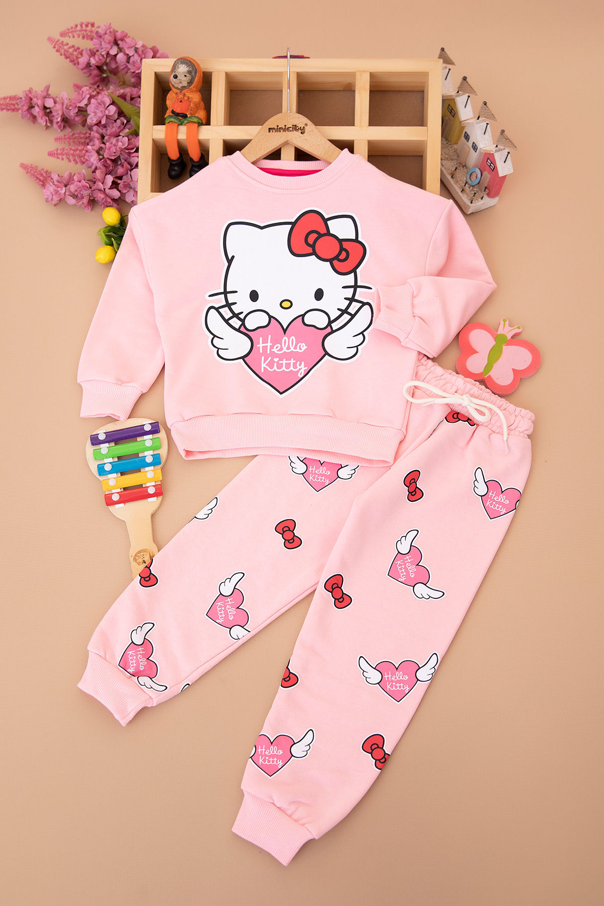 Kız Çocuk Hello Kitty Baskılı Üçip Takım - 4004 (4-10 Yaş)