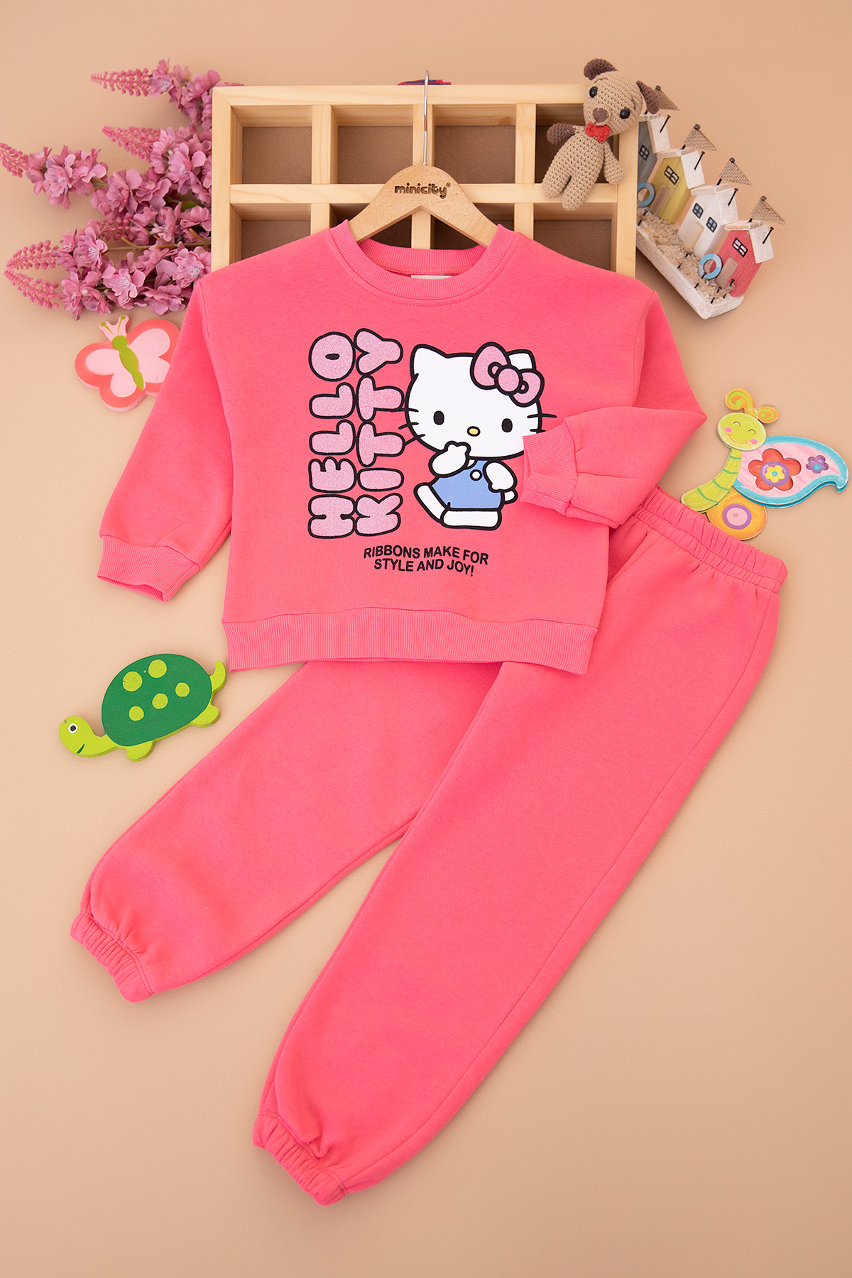 Kız Çocuk Hello Kitty Baskılı Üçip Takım - 6236 (5-8 Yaş)