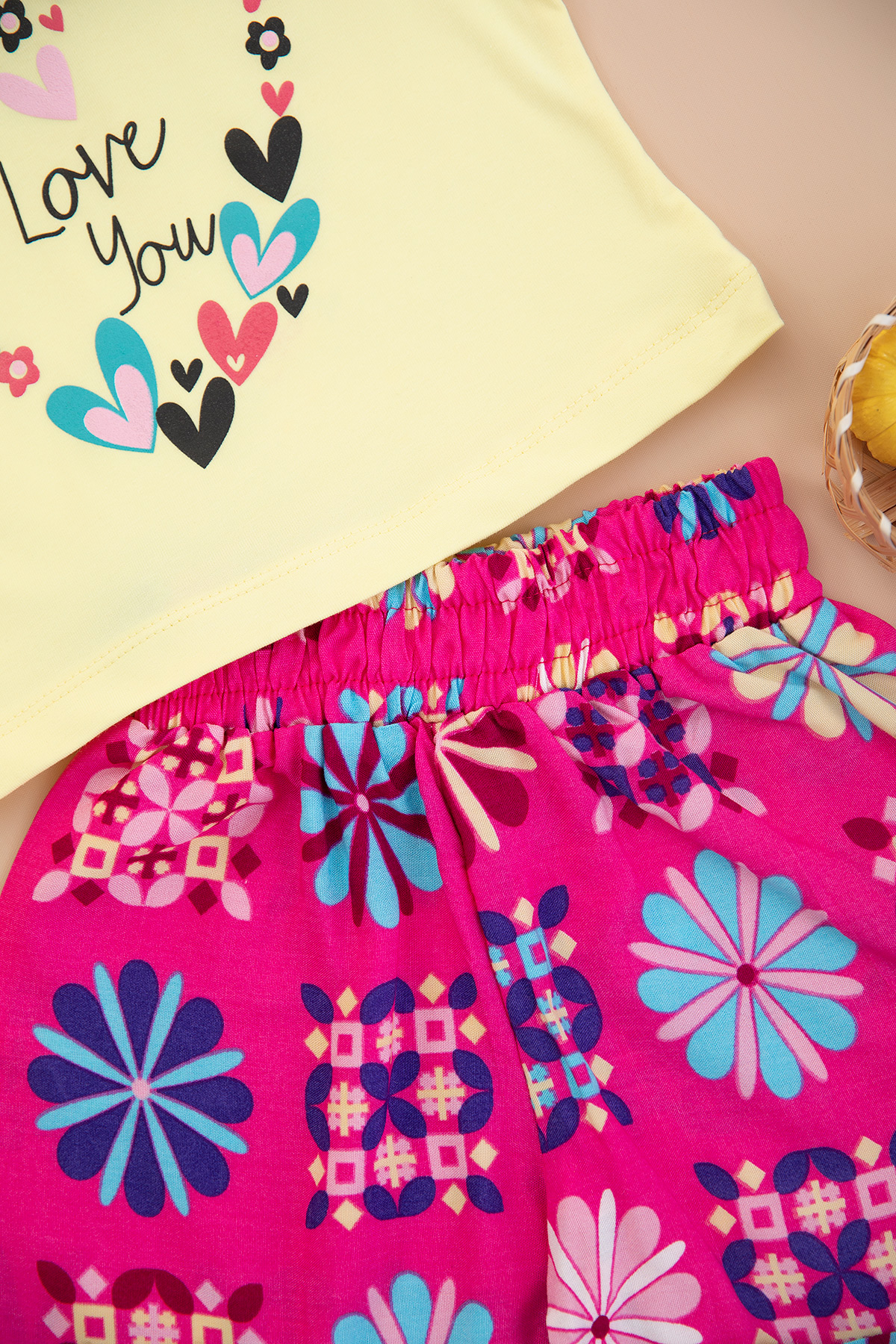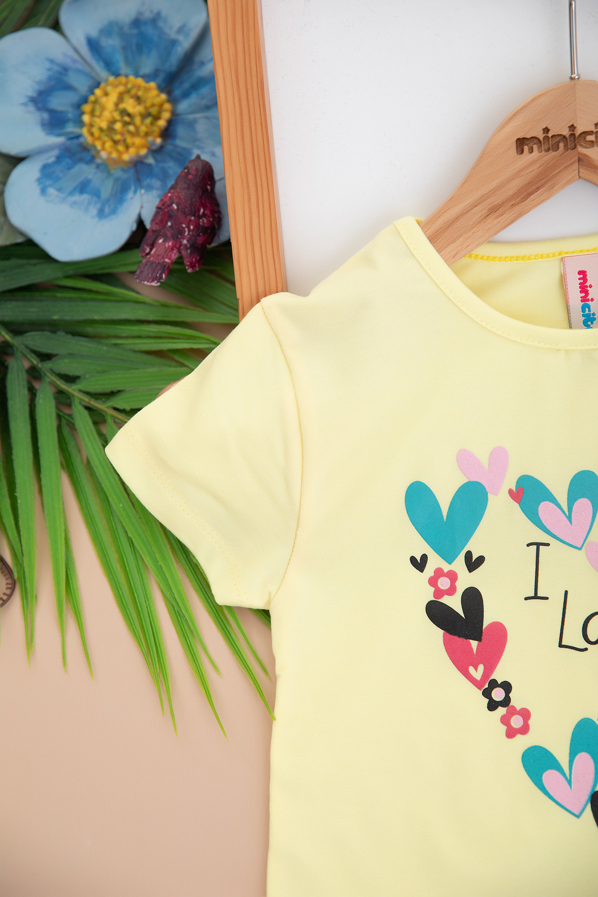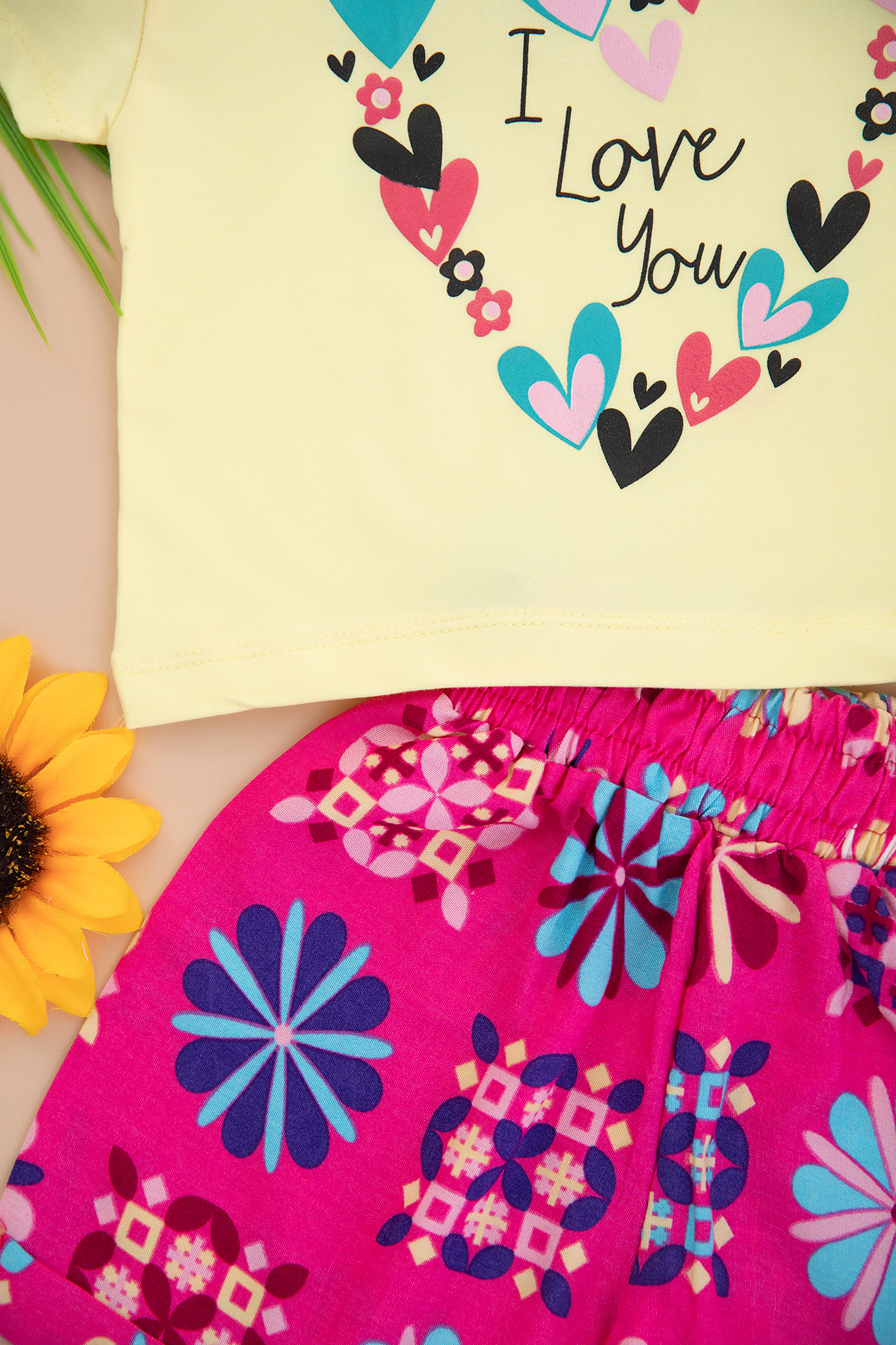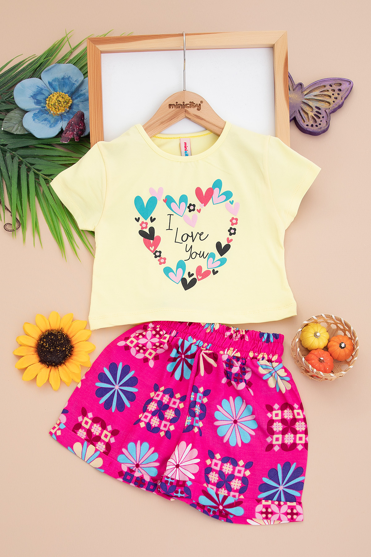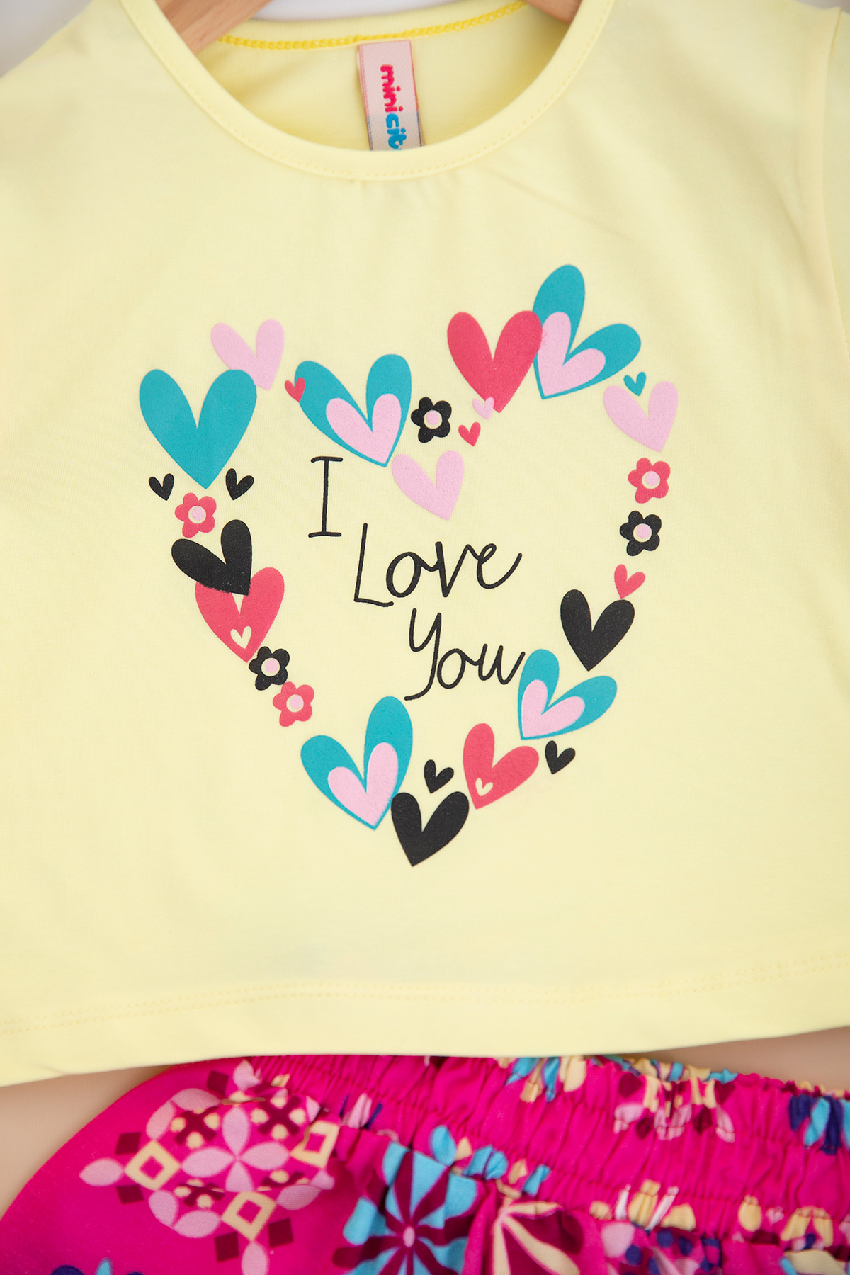 Kız Çocuk I Love You Baskılı Şortlu Takım - 3004 (2-5 Yaş)