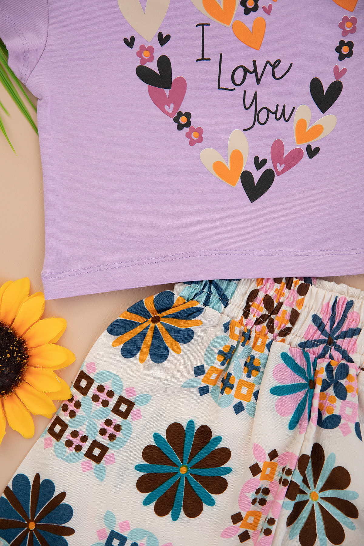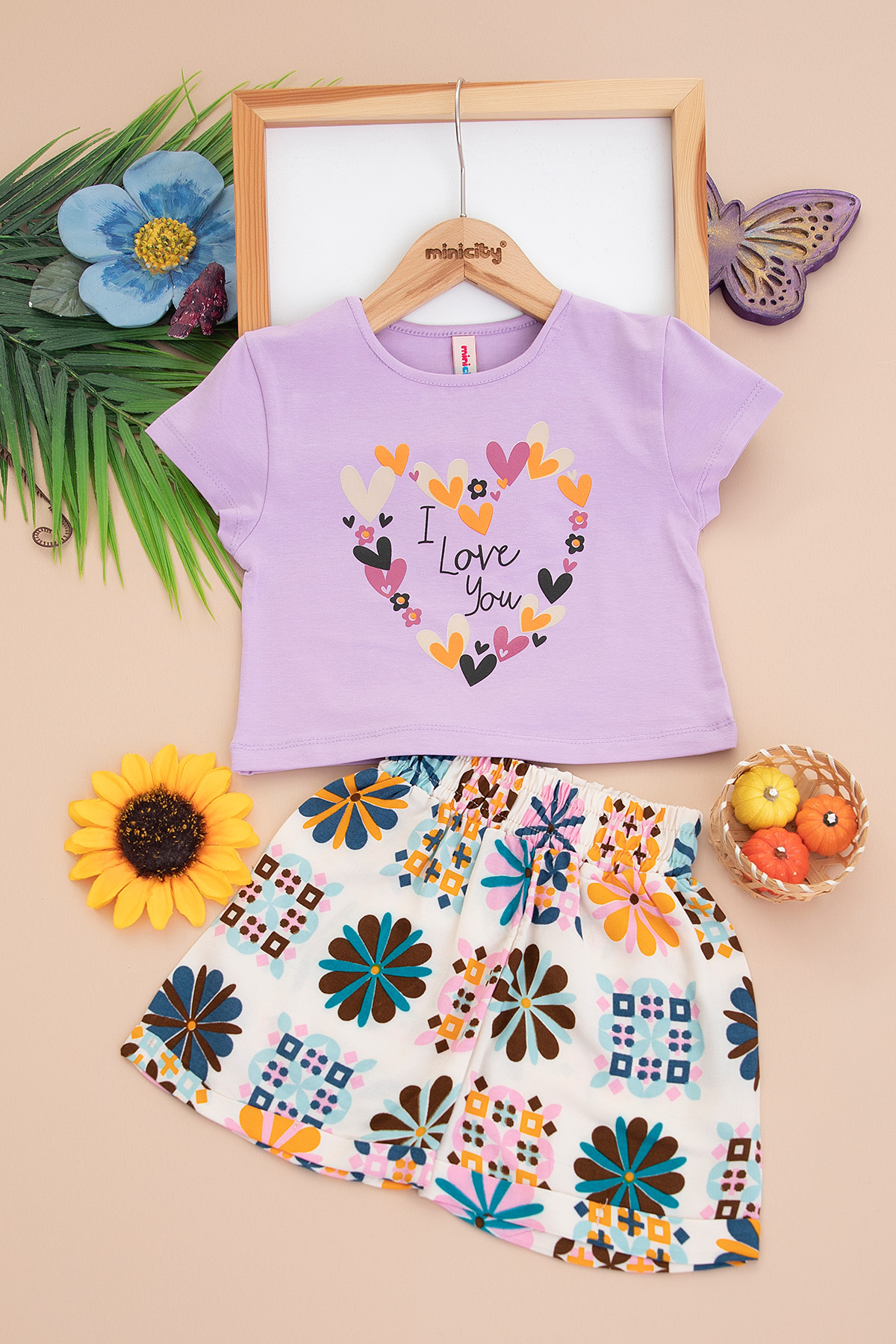 Kız Çocuk I Love You Baskılı Şortlu Takım - 3005 (5-8 Yaş)