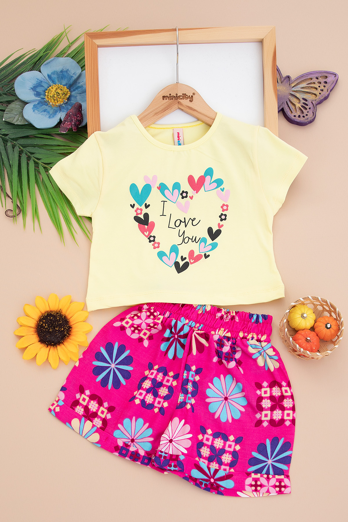 Kız Çocuk I Love You Baskılı Şortlu Takım - 3005 (5-8 Yaş)