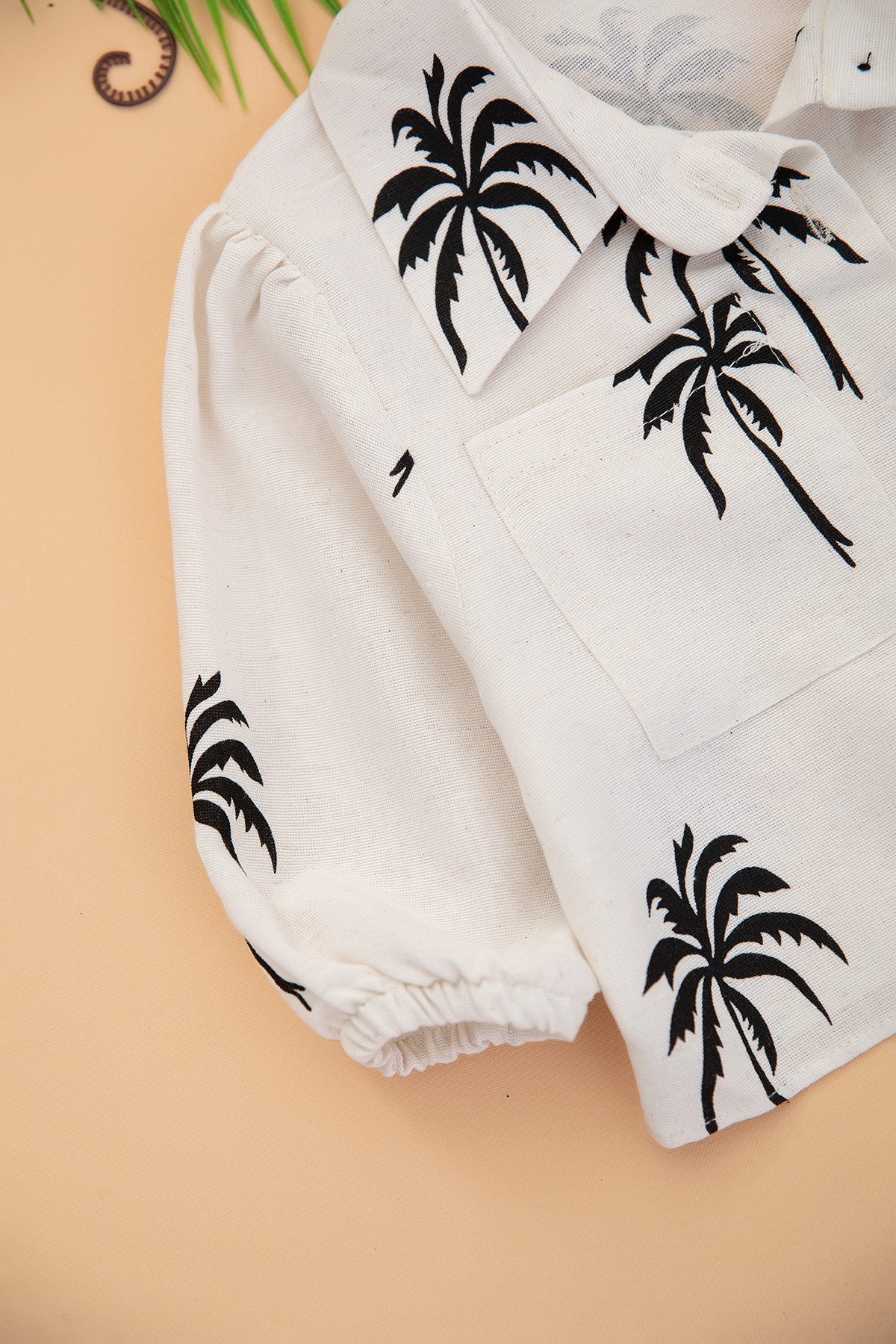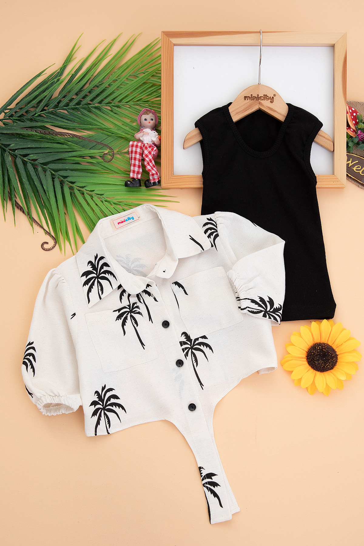 Kız Çocuk İkili Palmiye Baskılı Gömlek (6-10 Yaş)