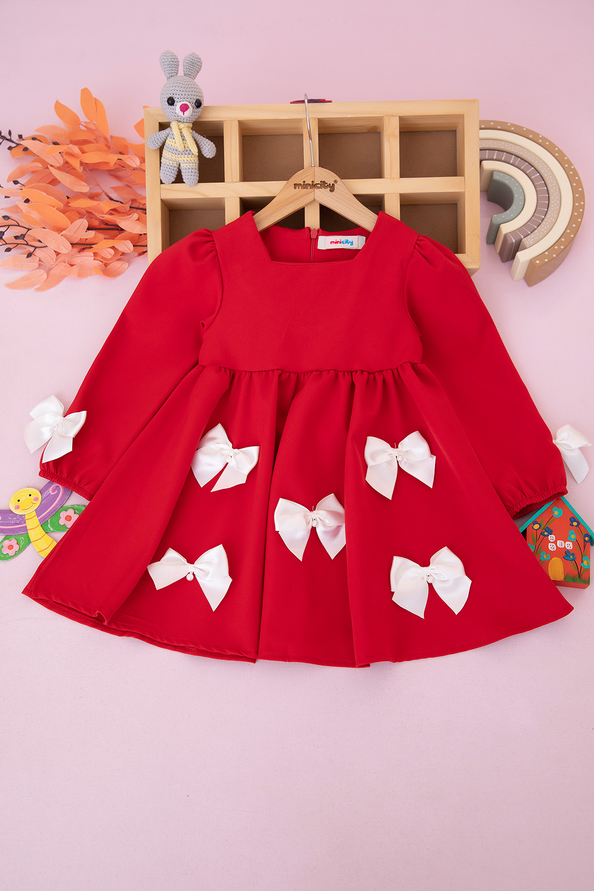 Kız Çocuk İncili Fiyonklu Elbise - 526202 (3-7 Yaş)