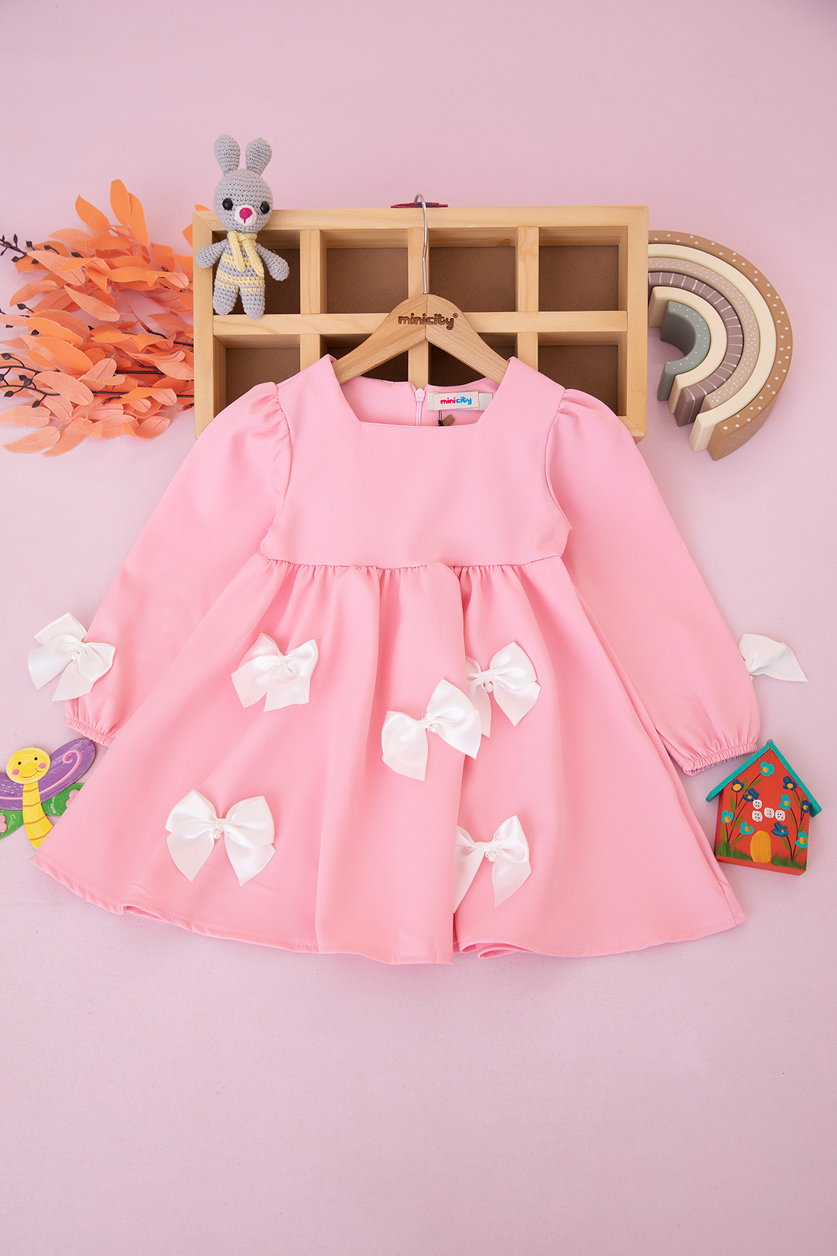 Kız Çocuk İncili Fiyonklu Elbise - 526202 (3-7 Yaş)