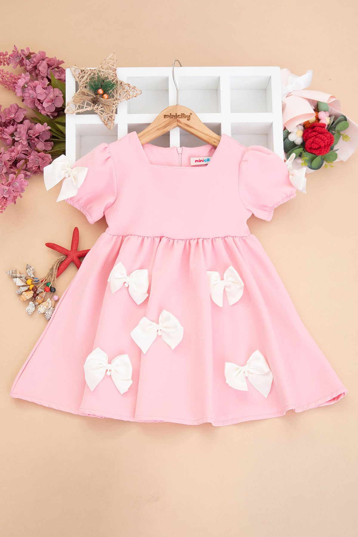 Kız Çocuk İncili Fiyonklu Elbise - 526215 (3-7 Yaş)