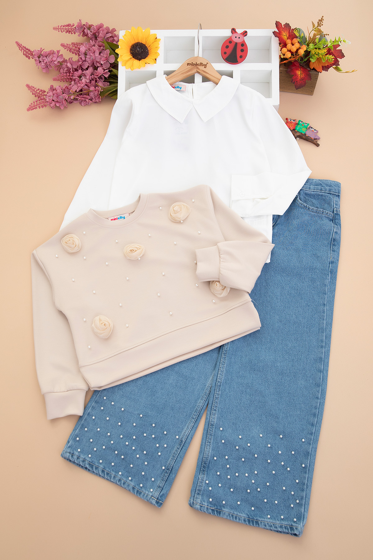 Kız Çocuk İncili Güllü Üçlü Takım - 483 (9-12 Yaş)