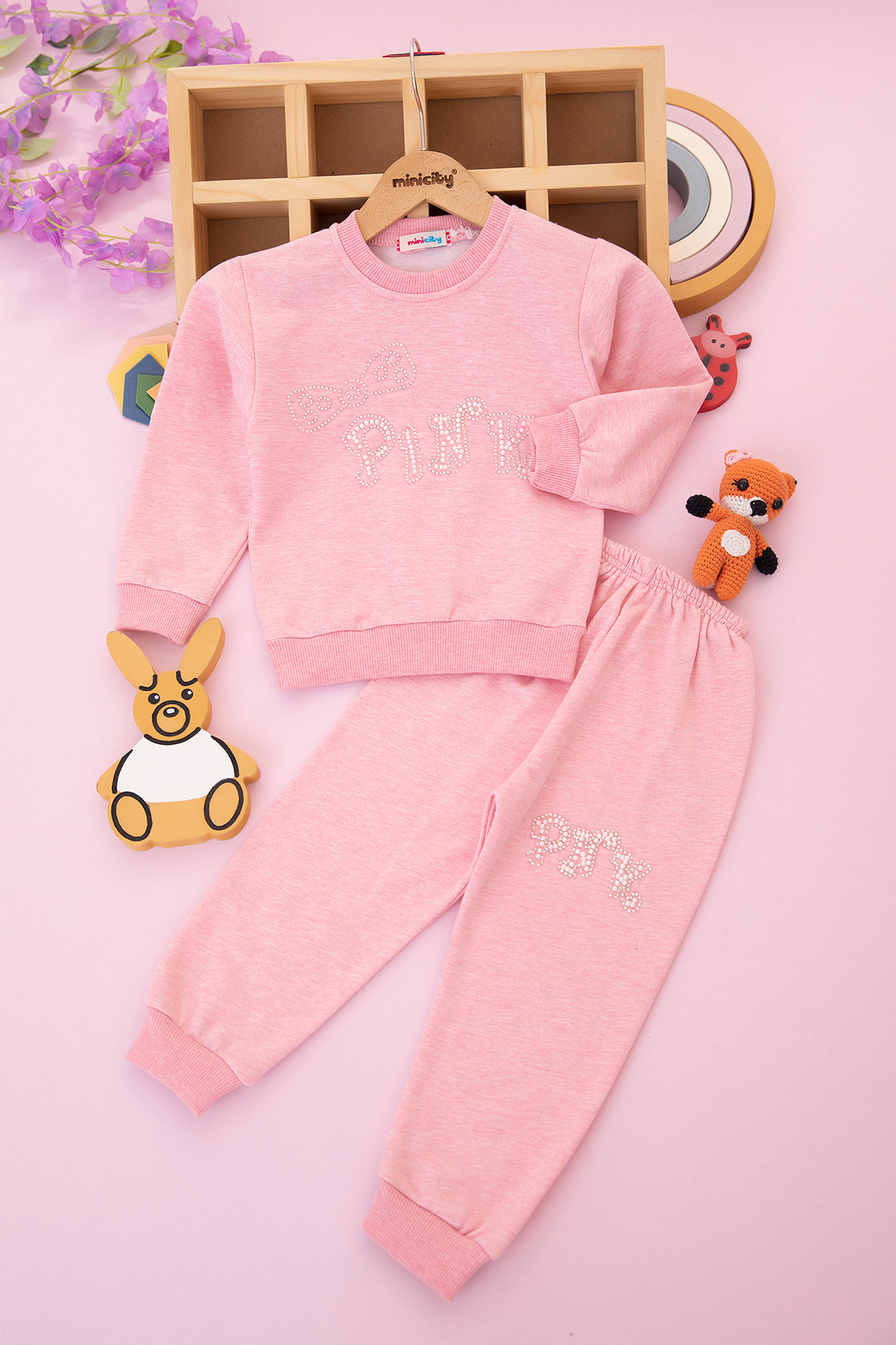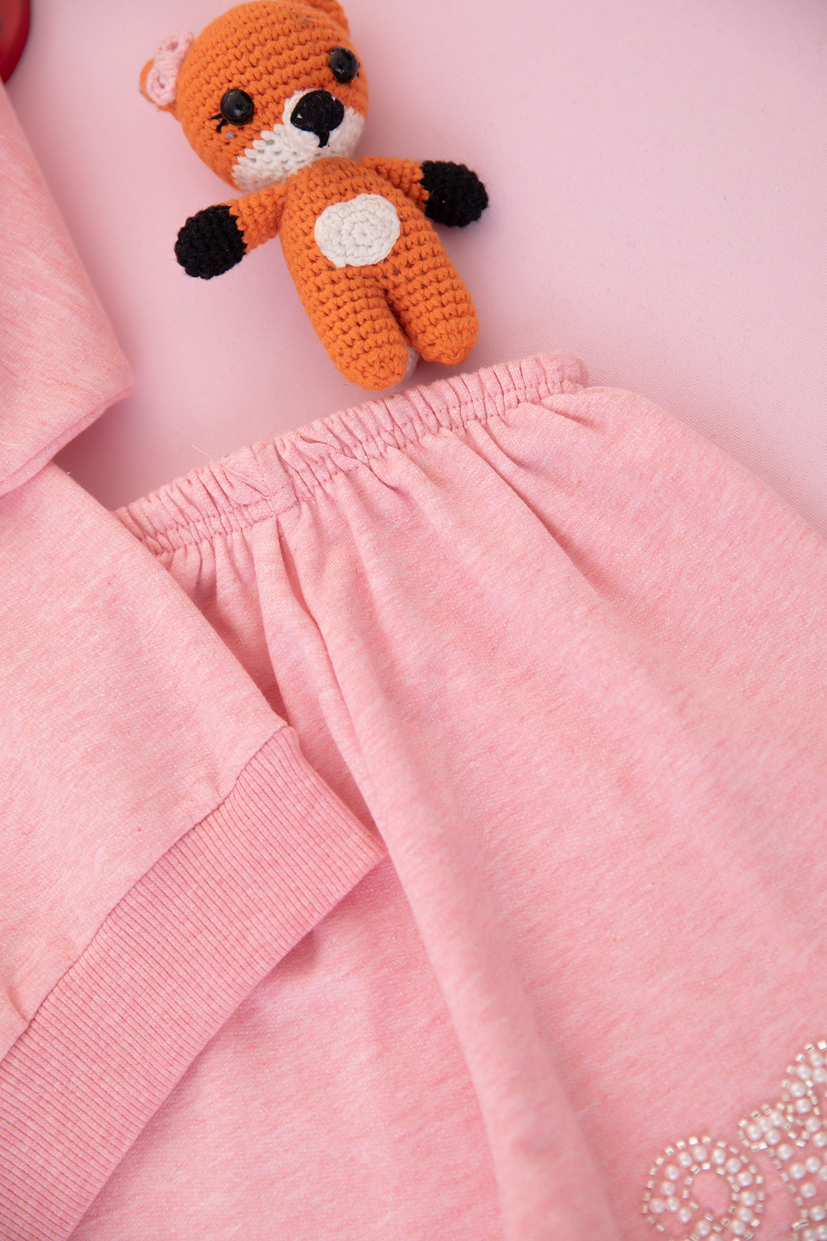 Kız Çocuk İncili Pink Nakışlı Şardonlu Takım (6-9 Yaş)