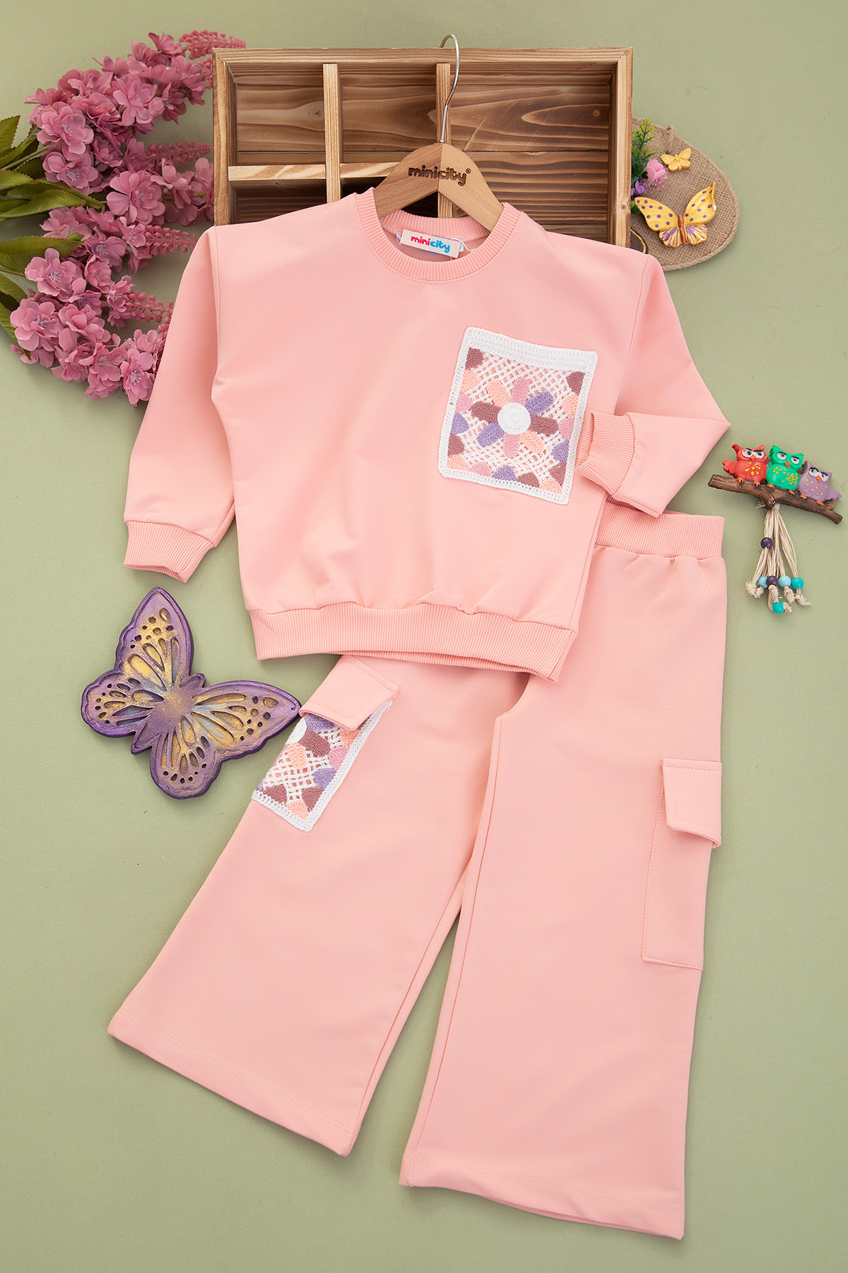 Kız Çocuk İşlemeli Cepli İspanyol Takım - 109 (3-7 Yaş)