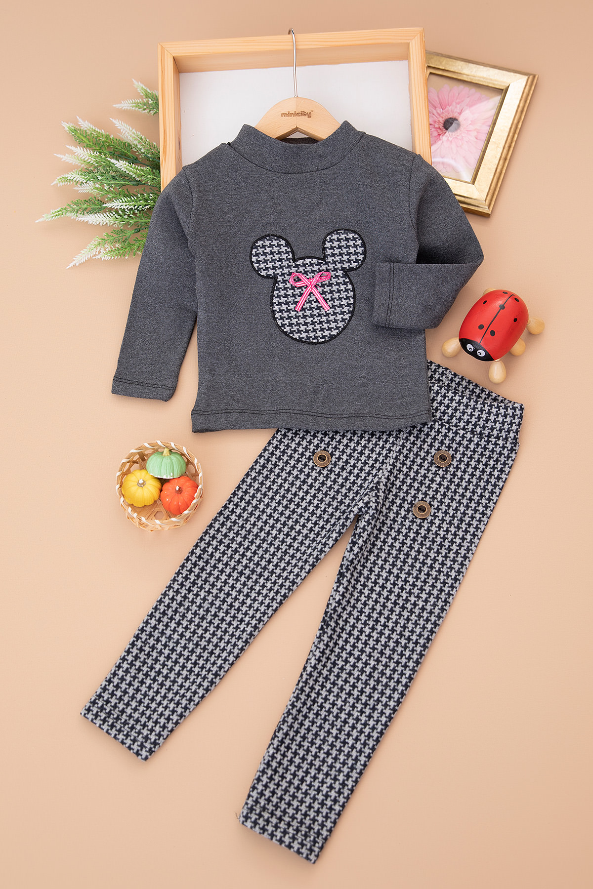 Kız Çocuk Jakarlı Mickey Kafa Taytlı Takım