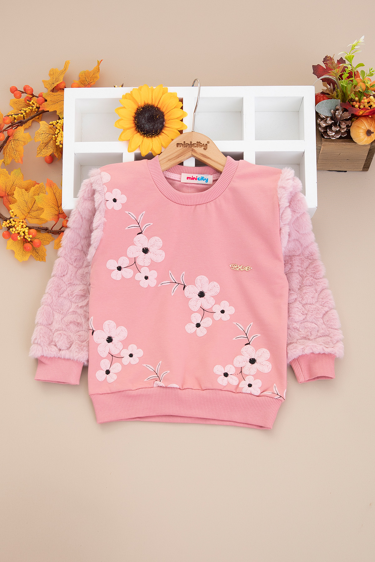 Kız Çocuk Kabartma Baskılı Çiçek Sweat - 7640 (5-8 Yaş)