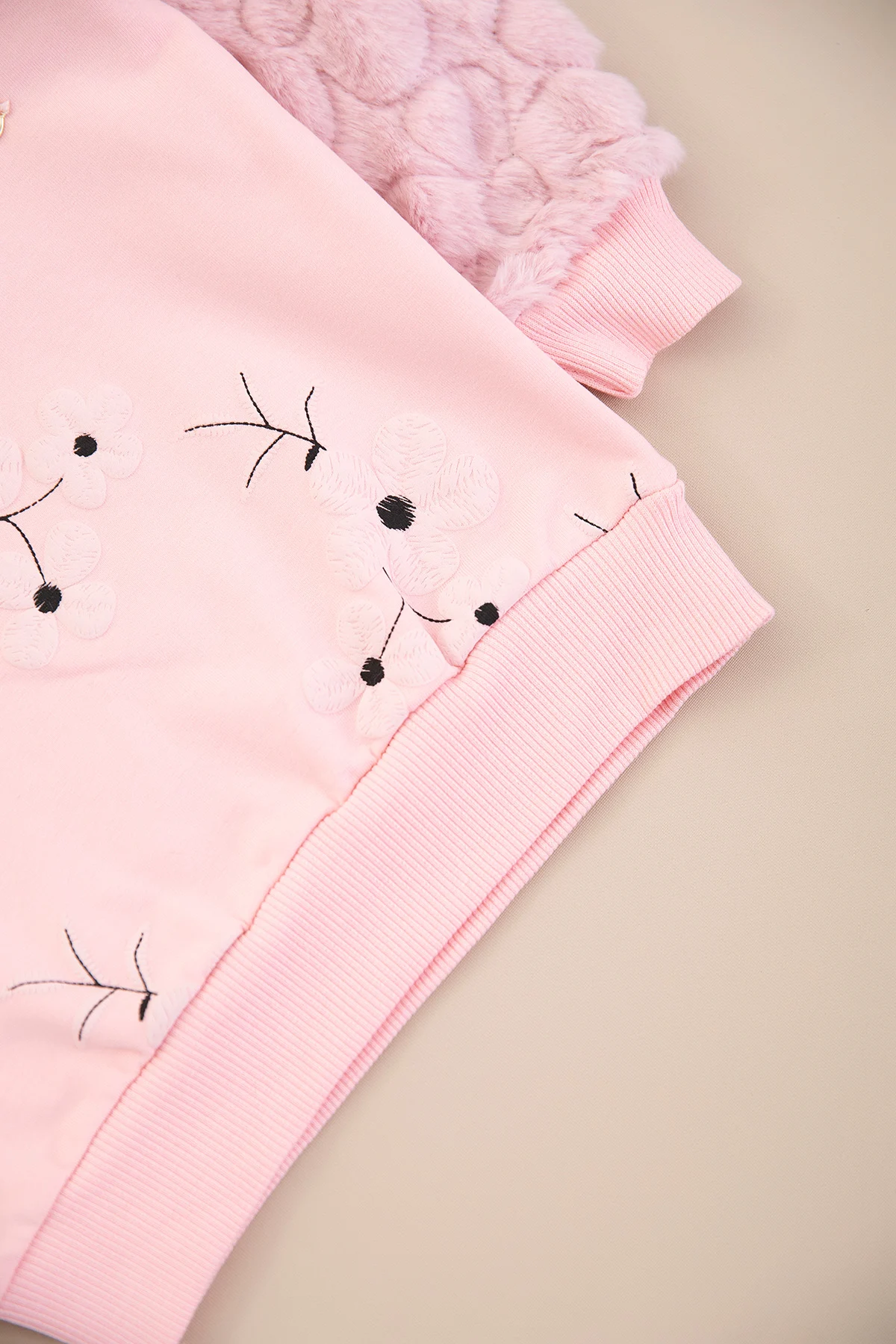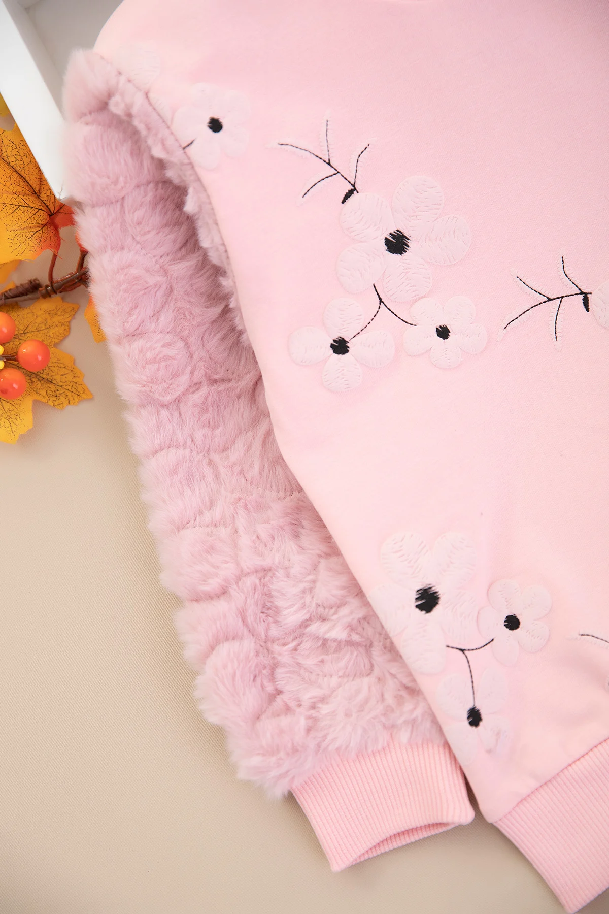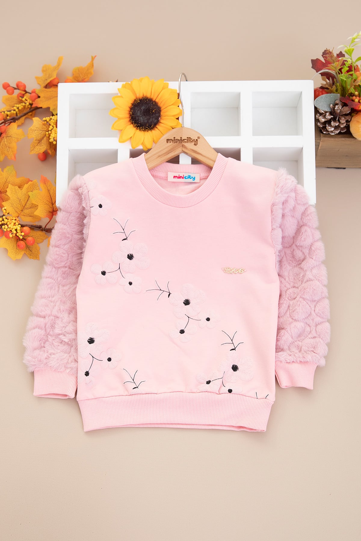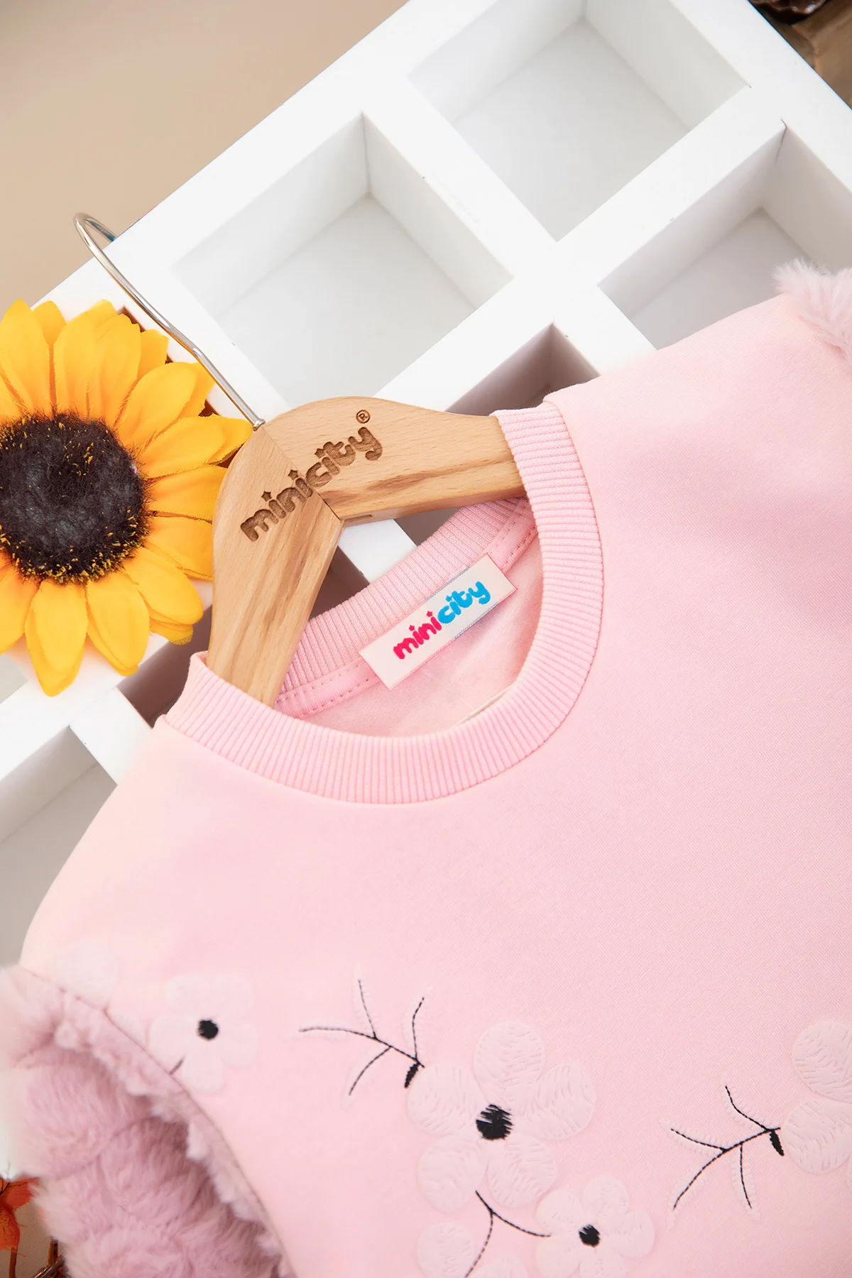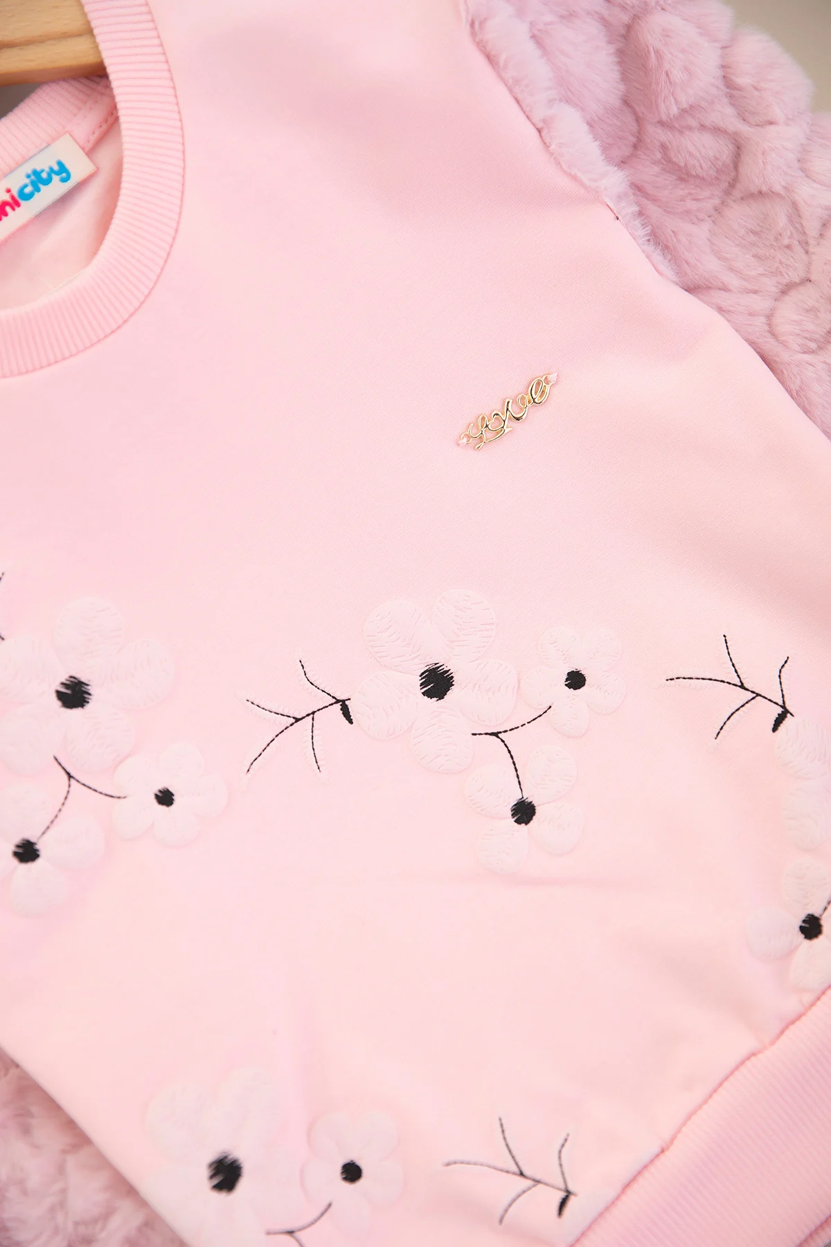Kız Çocuk Kabartma Baskılı Çiçek Sweat - 7641 (9-12 Yaş)