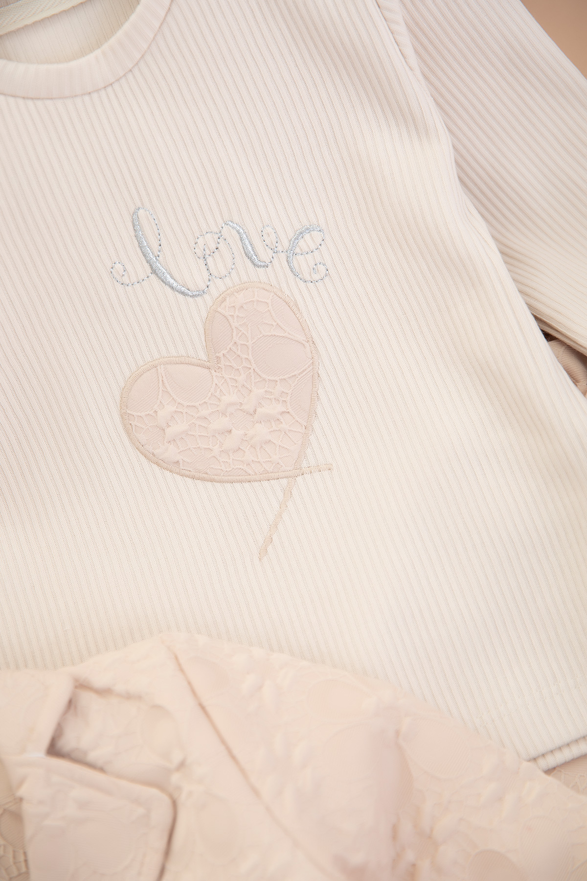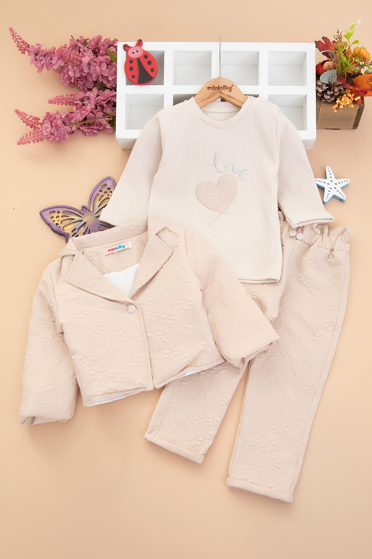 Kız Çocuk Kabartma Çiçekli Üçlü Takım - 5249 (2-4 Yaş)