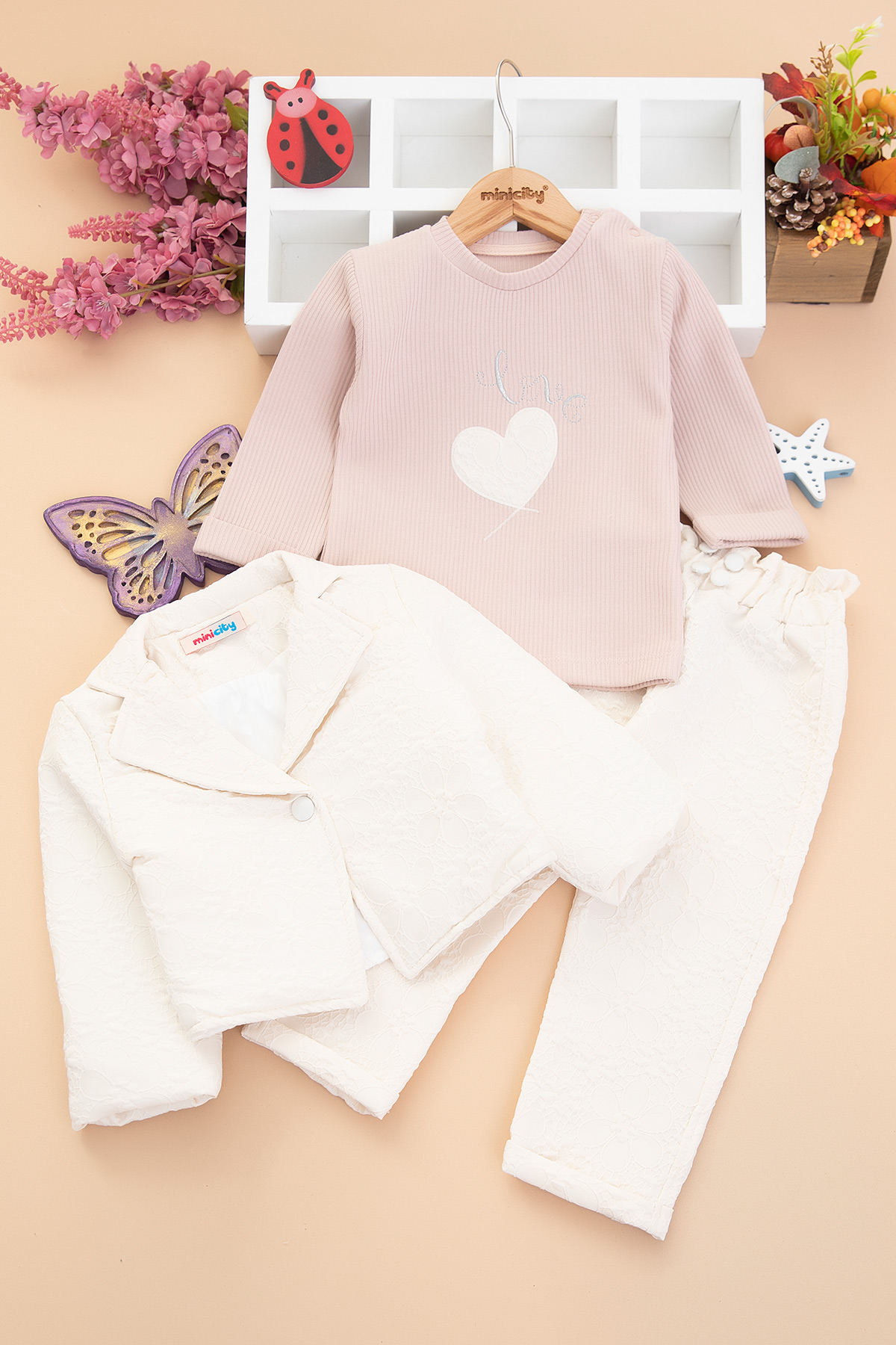 Kız Çocuk Kabartma Çiçekli Üçlü Takım - 5249 (2-4 Yaş)