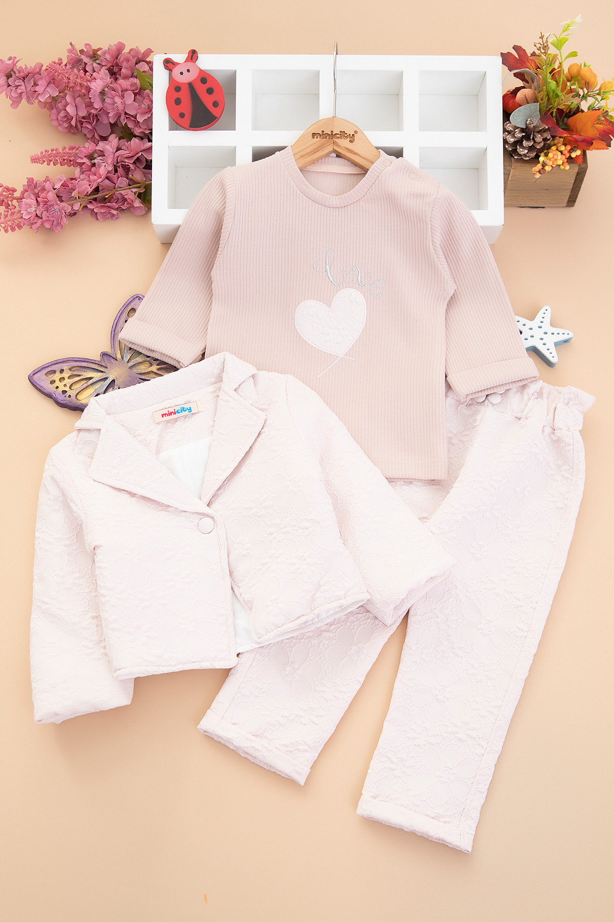 Kız Çocuk Kabartma Çiçekli Üçlü Takım - 5249 (2-4 Yaş)
