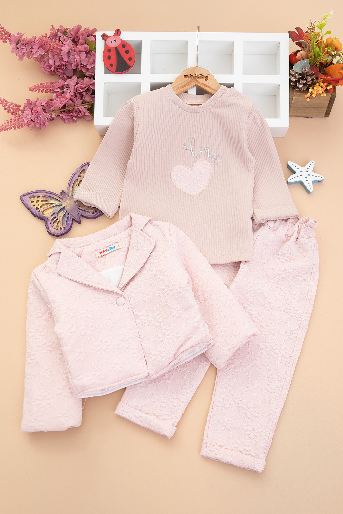 Kız Çocuk Kabartma Çiçekli Üçlü Takım - 5249 (2-4 Yaş)