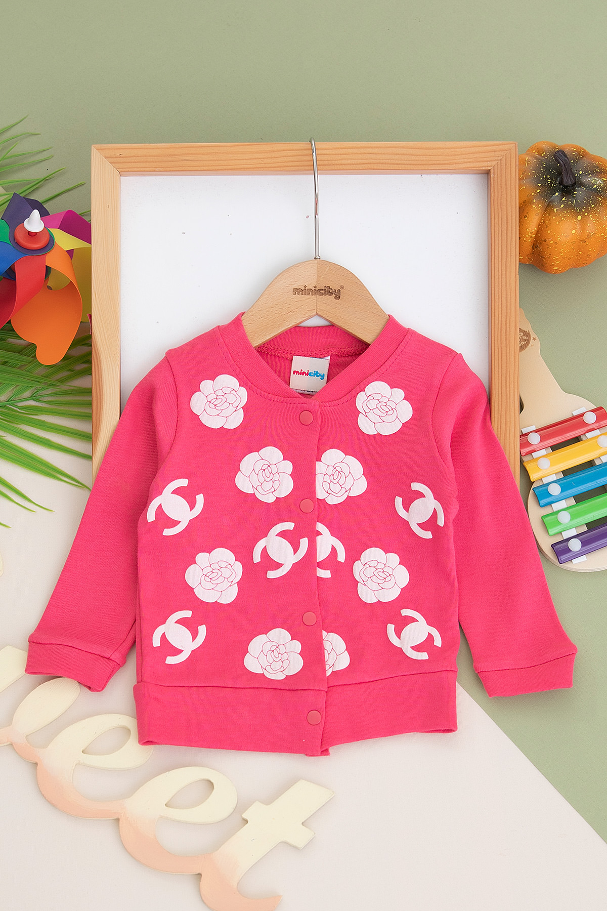 Kız Çocuk Kabartma Gül Baskılı Hırka - 1050 (9-36 Ay)