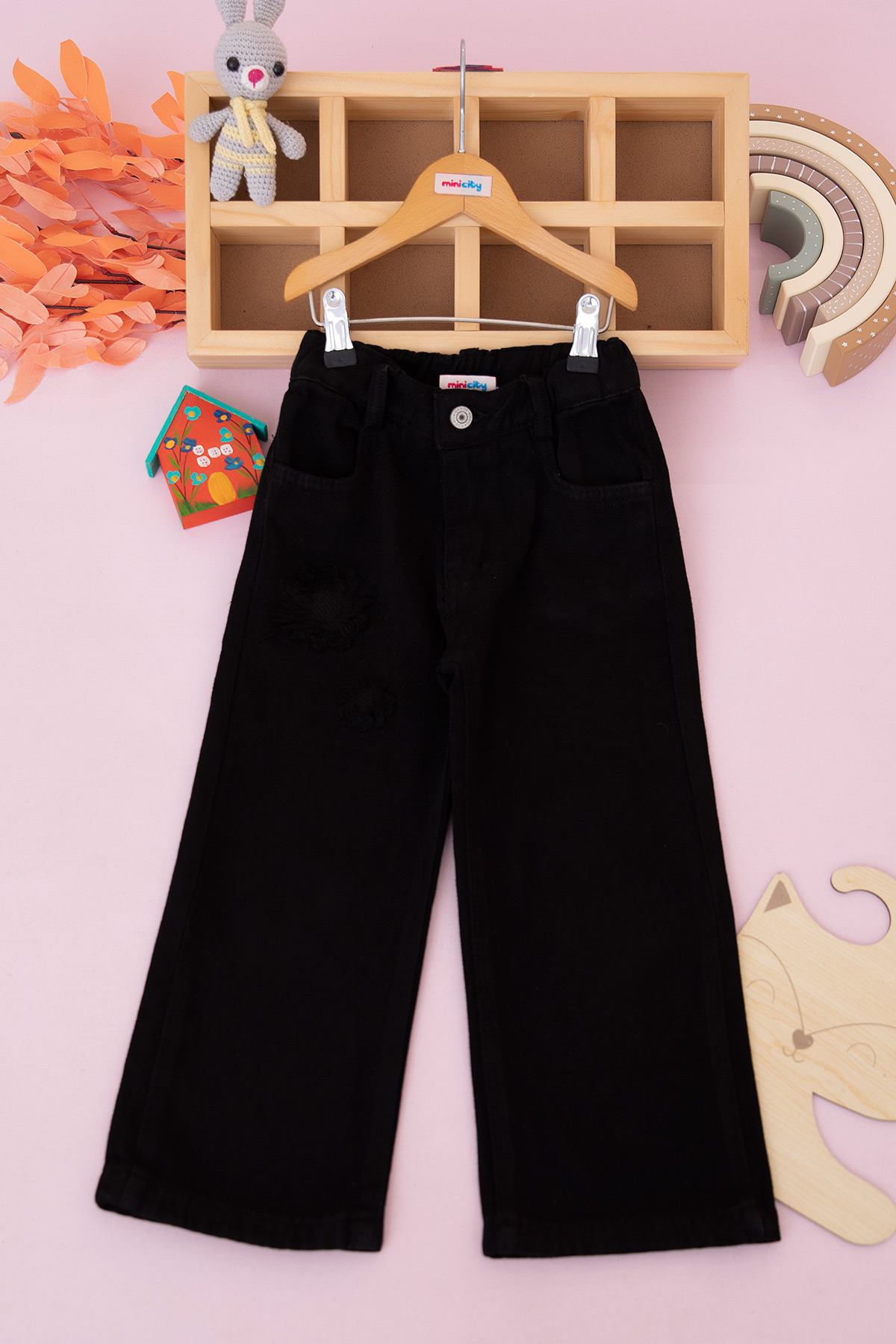 Kız Çocuk Kabartma Nakışlı Ham Pantolon - 3474 (5-8 Yaş)