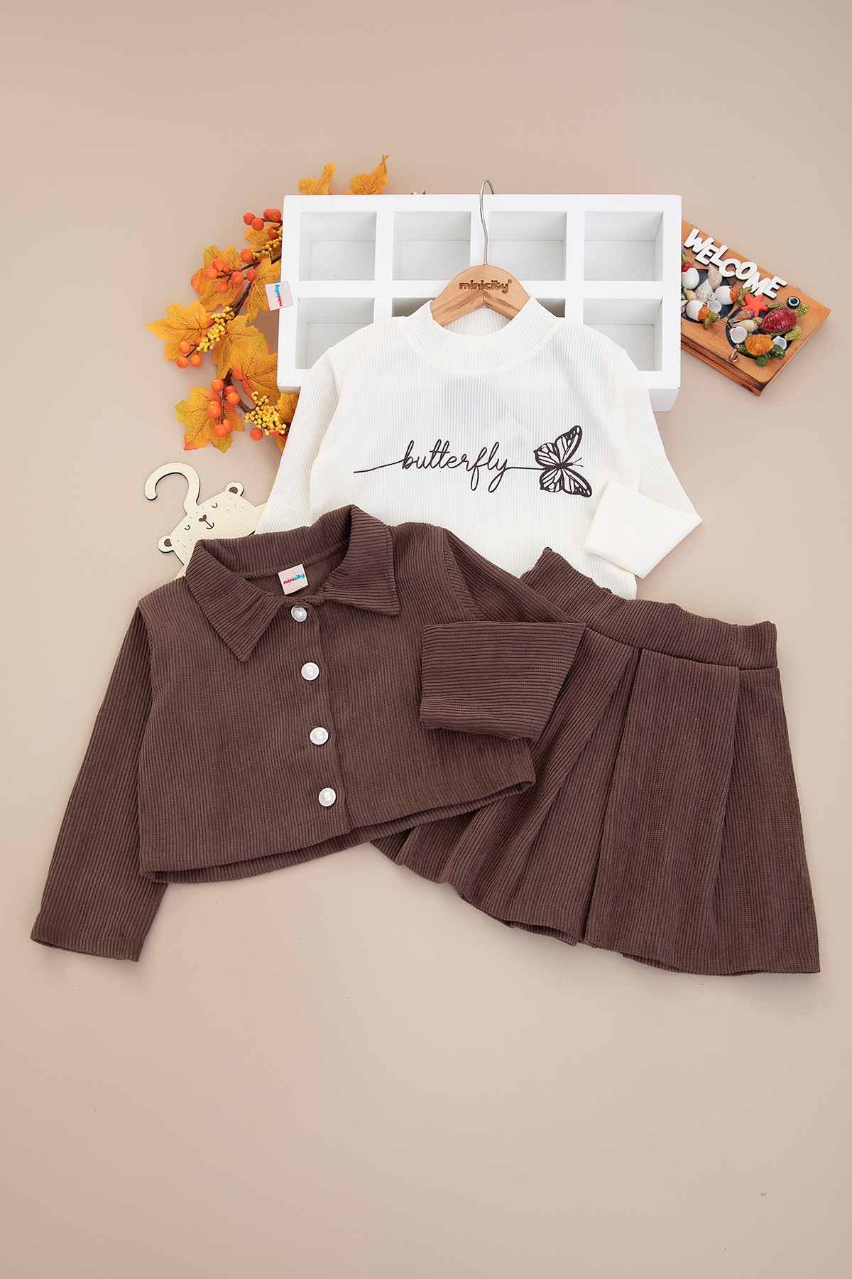Kız Çocuk Kadife Ceketli Etekli Takım - 14001 (4-8 Yaş)