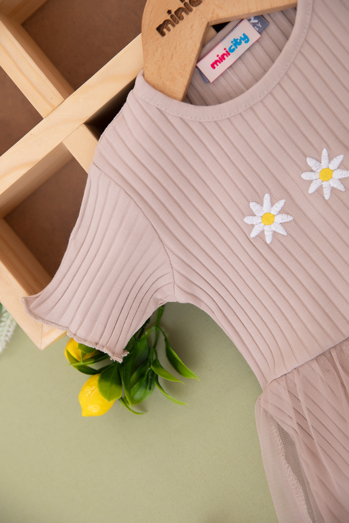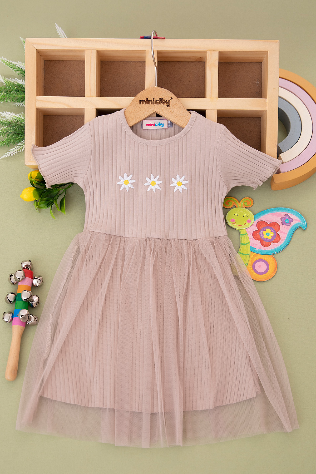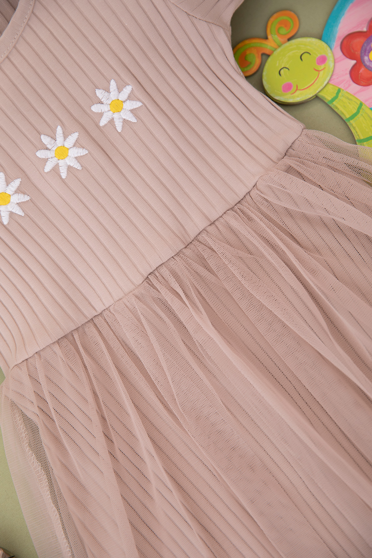 Kız Çocuk Kalı Fitilli Nakışlı Tüllü Elbise - 3844 (3-7 Yaş)