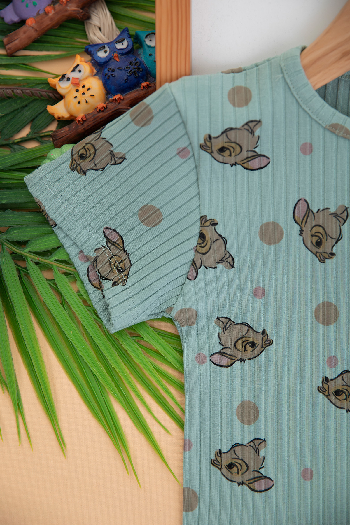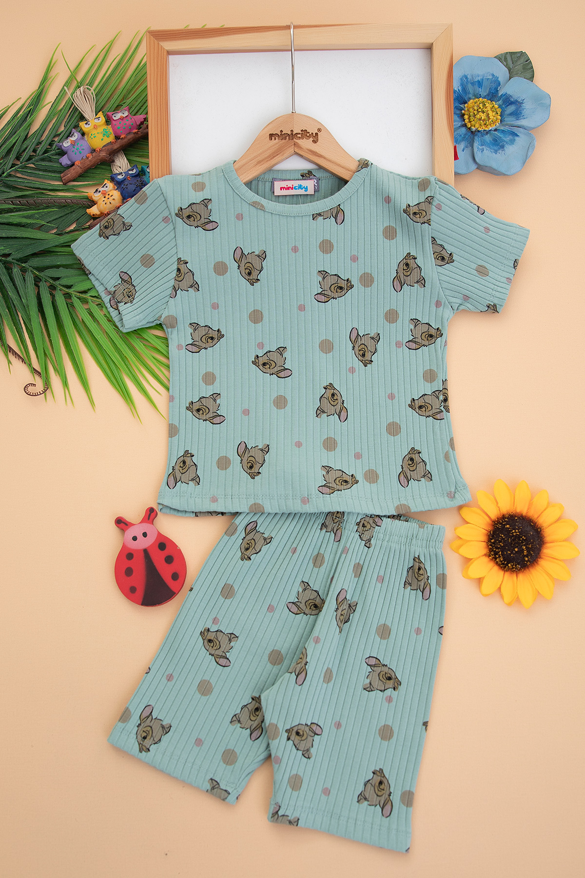 Kız Çocuk Kalın Fitilli Ceylan Şortlu Takım - 3825 (3-8 Yaş)