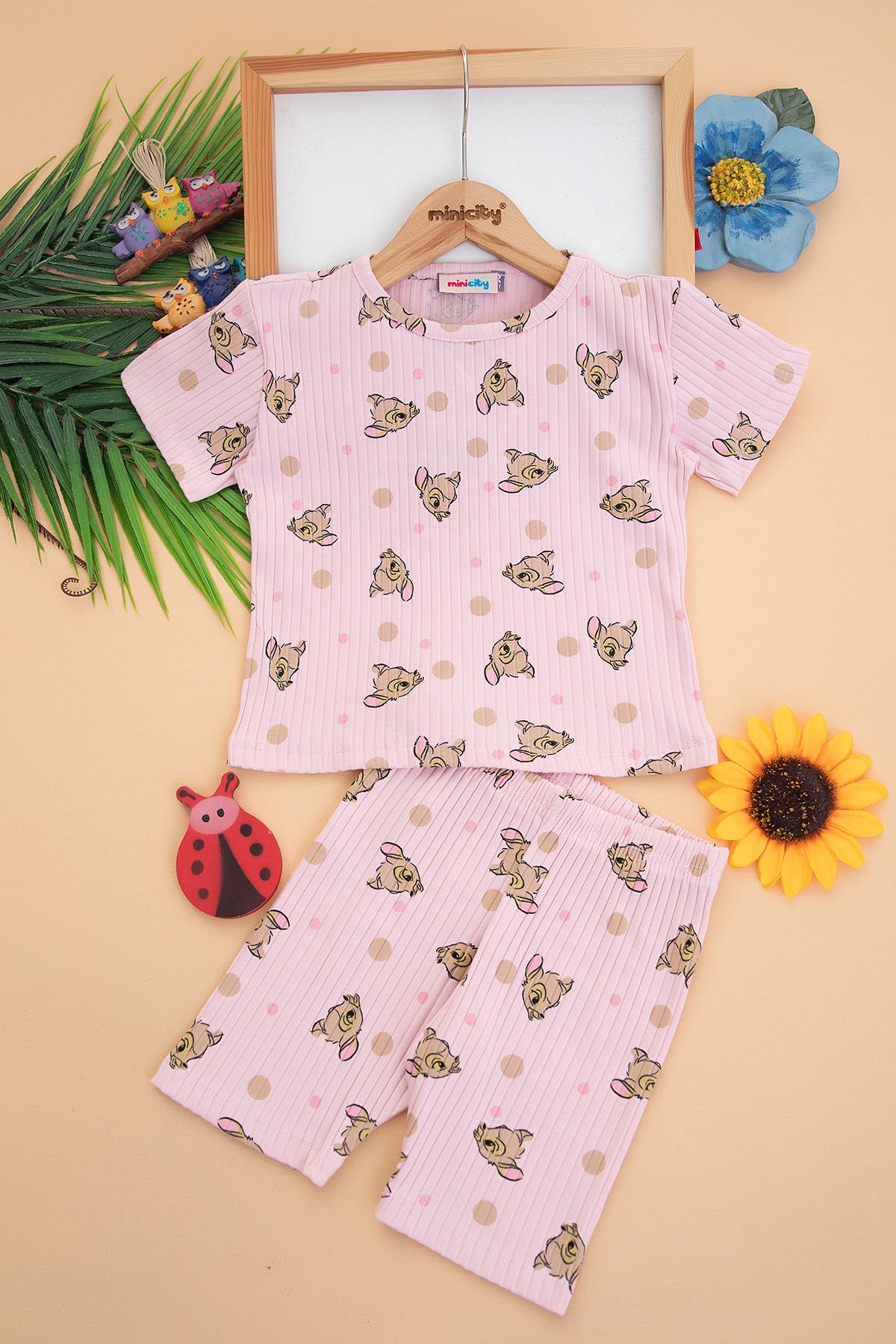 Kız Çocuk Kalın Fitilli Ceylan Şortlu Takım - 3825 (3-8 Yaş)