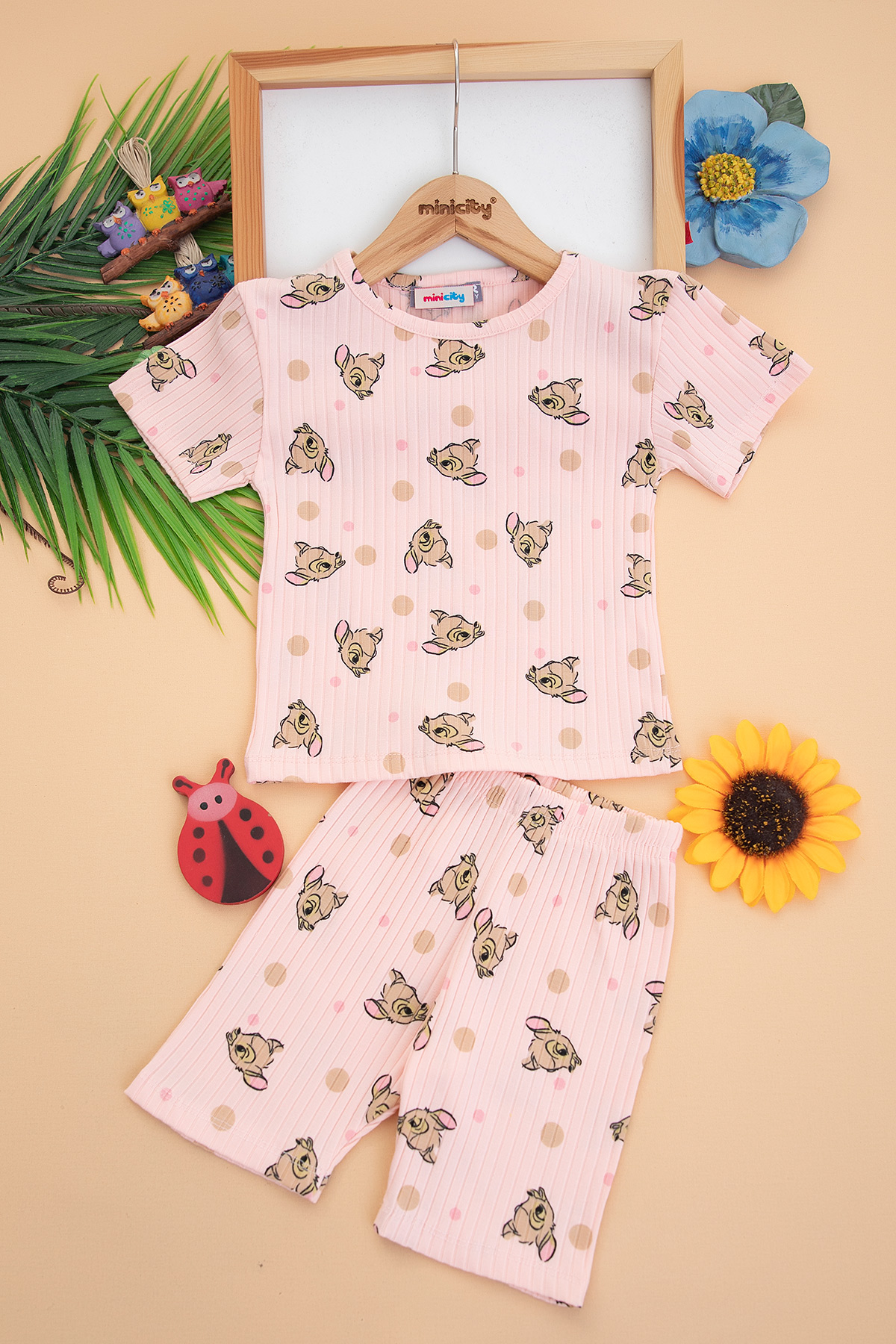 Kız Çocuk Kalın Fitilli Ceylan Şortlu Takım - 3825 (3-8 Yaş)
