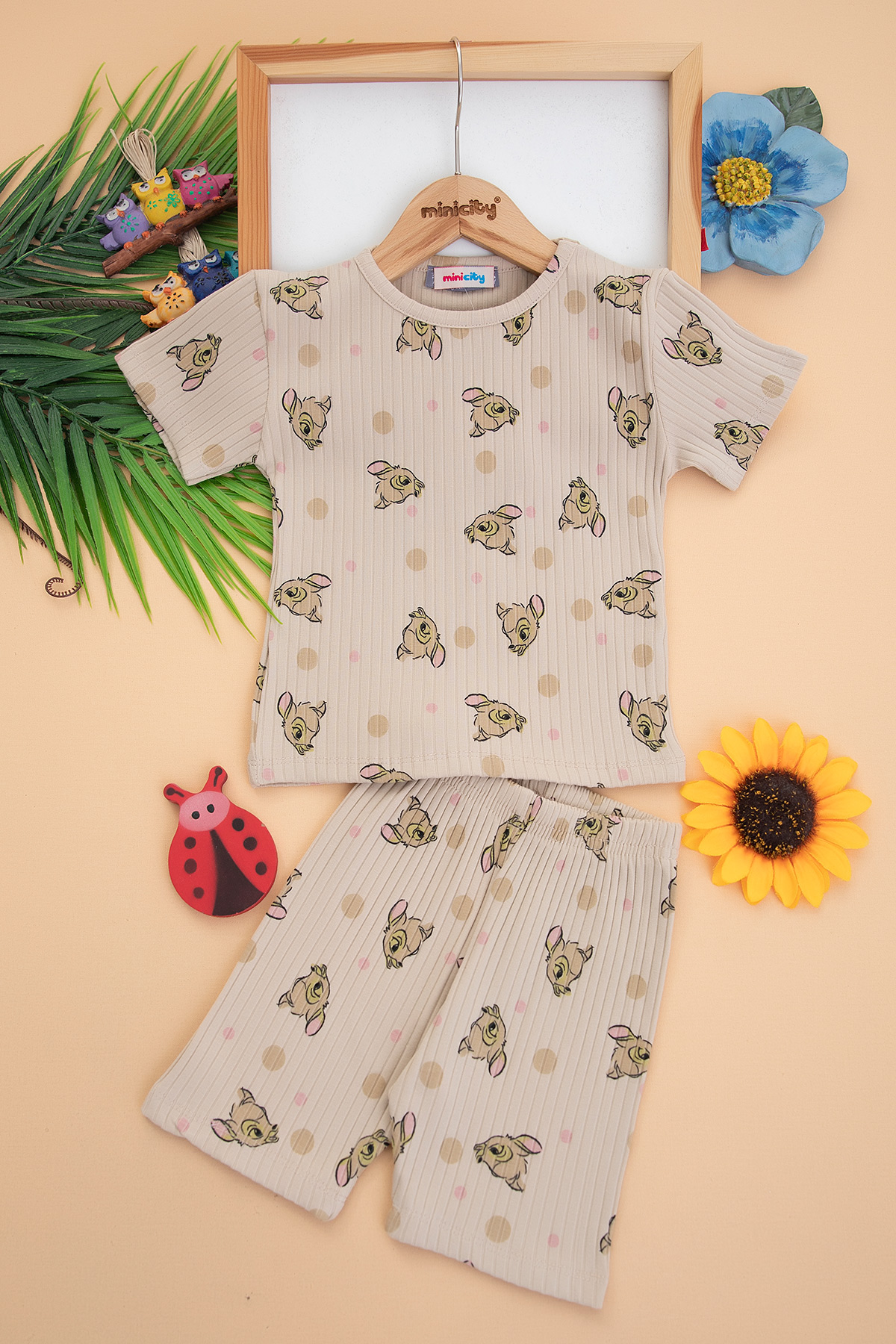 Kız Çocuk Kalın Fitilli Ceylan Şortlu Takım - 3825 (3-8 Yaş)