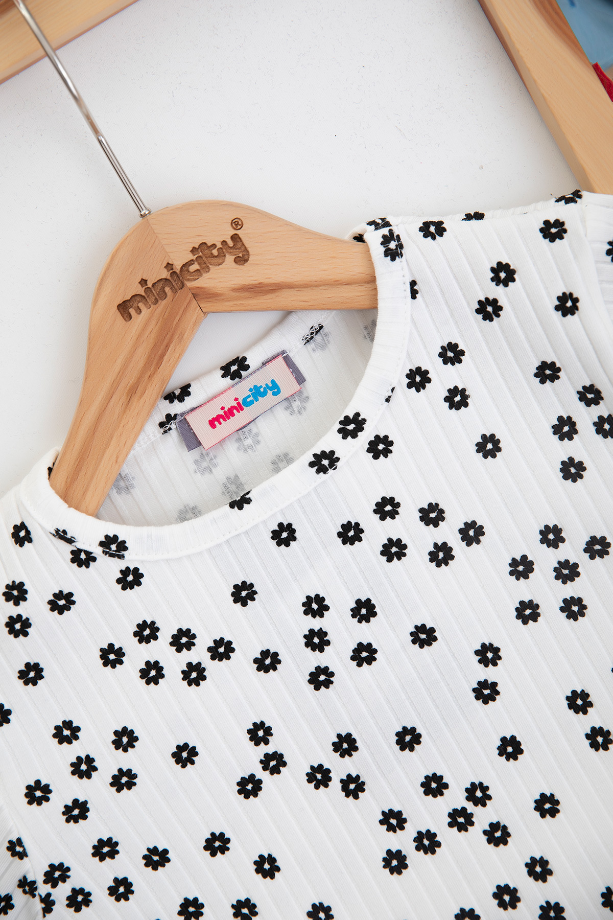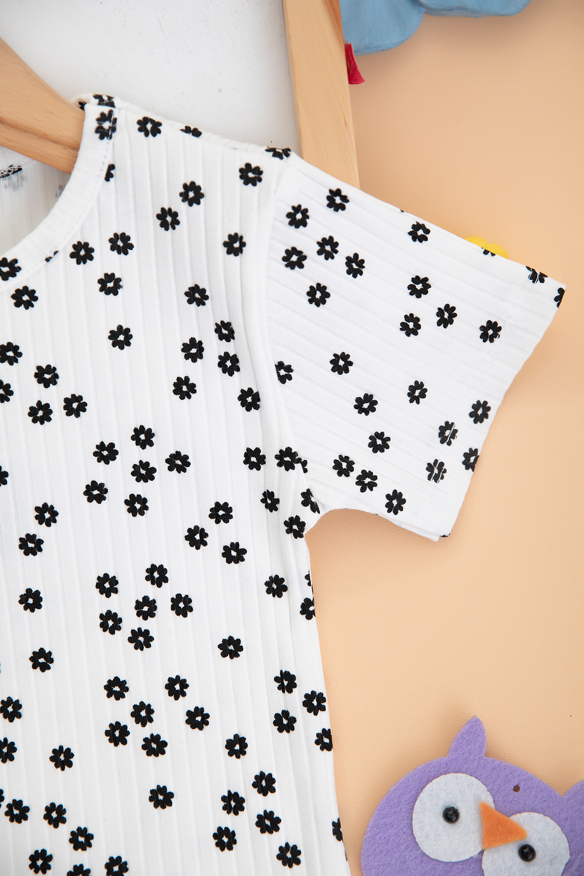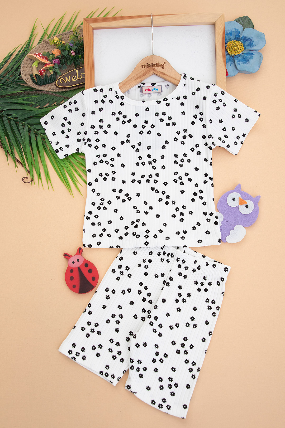 Kız Çocuk Kalın Fitilli Çiçekli Şortlu Takım - 3829 (3-8 Yaş)