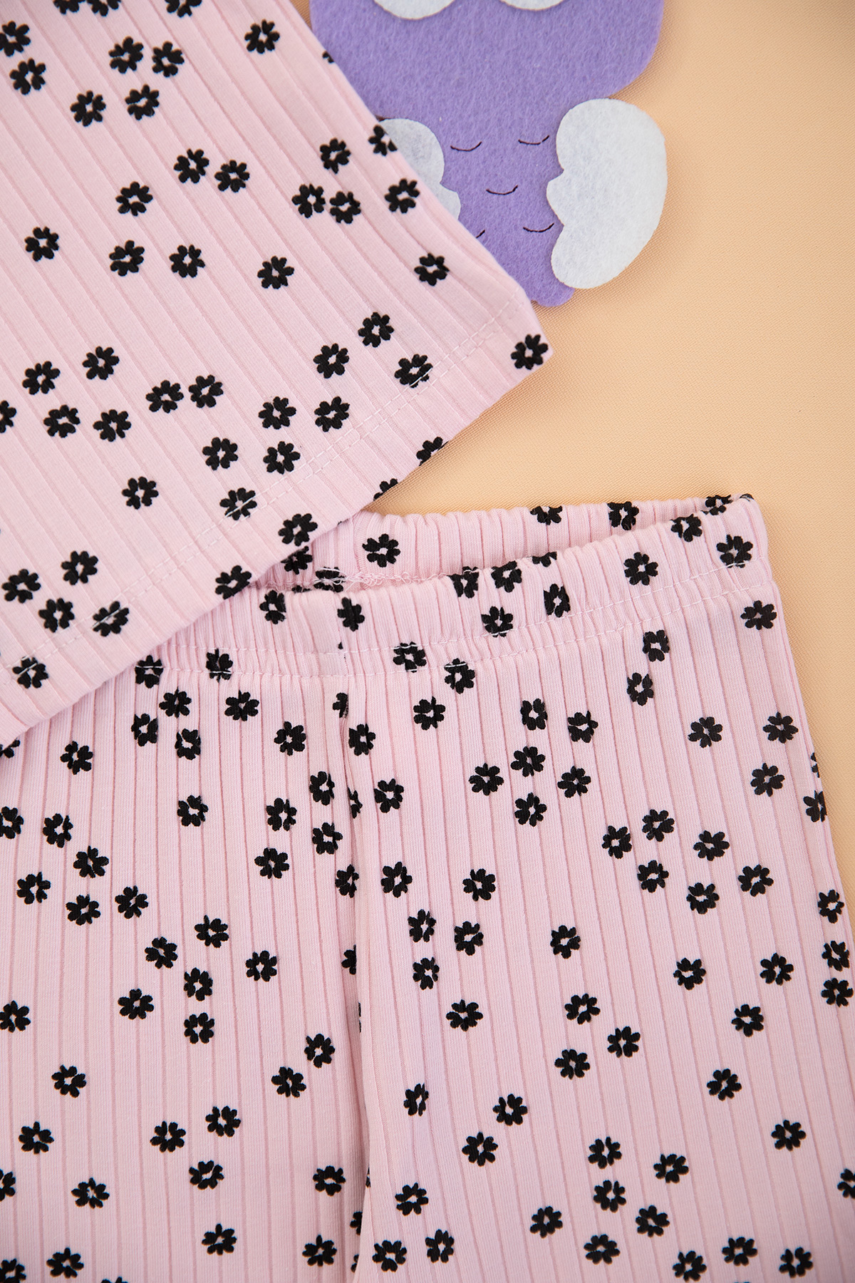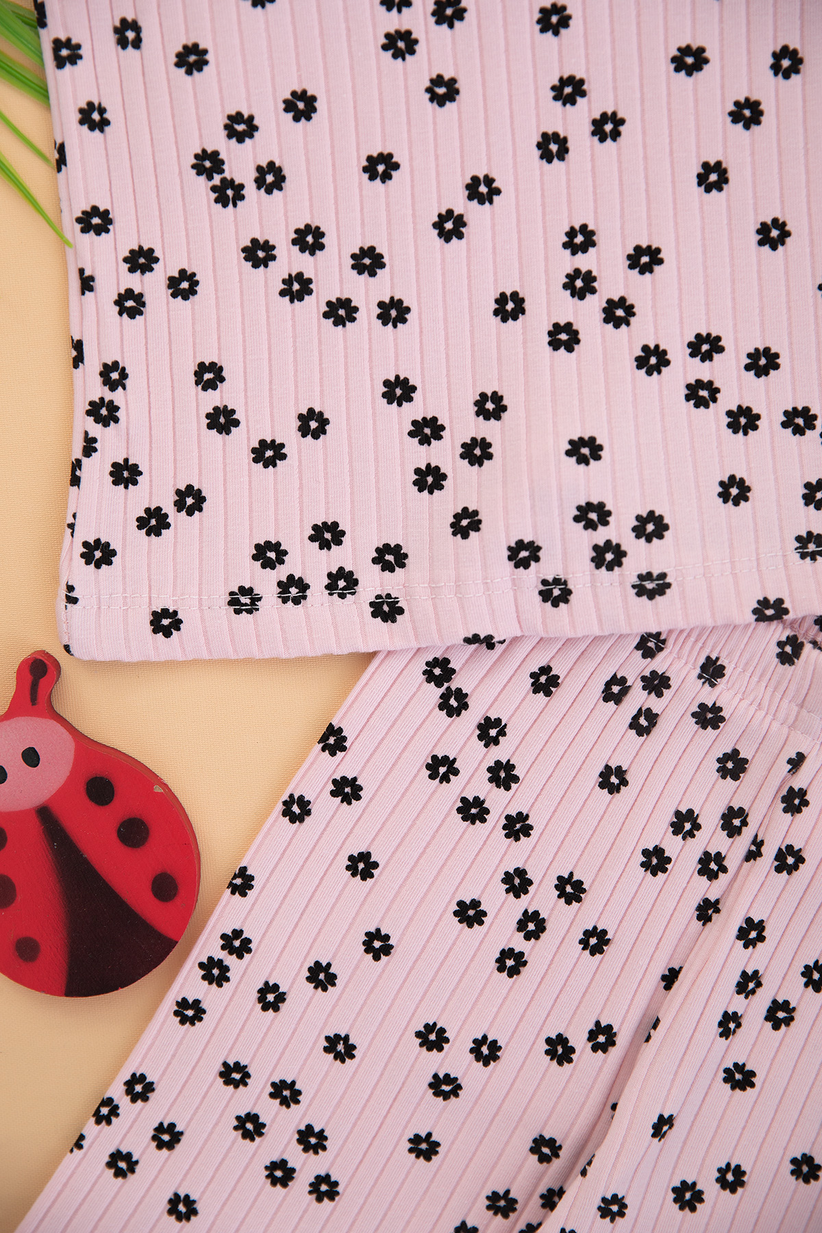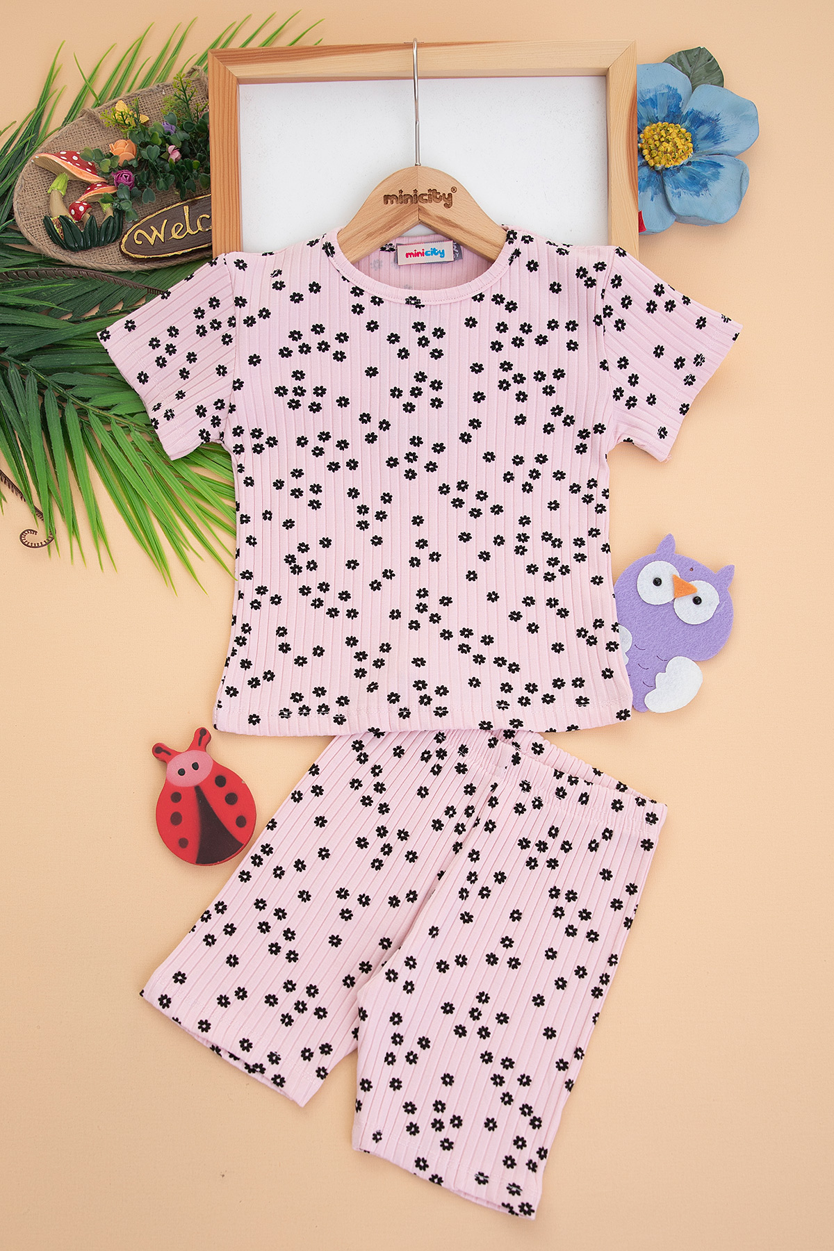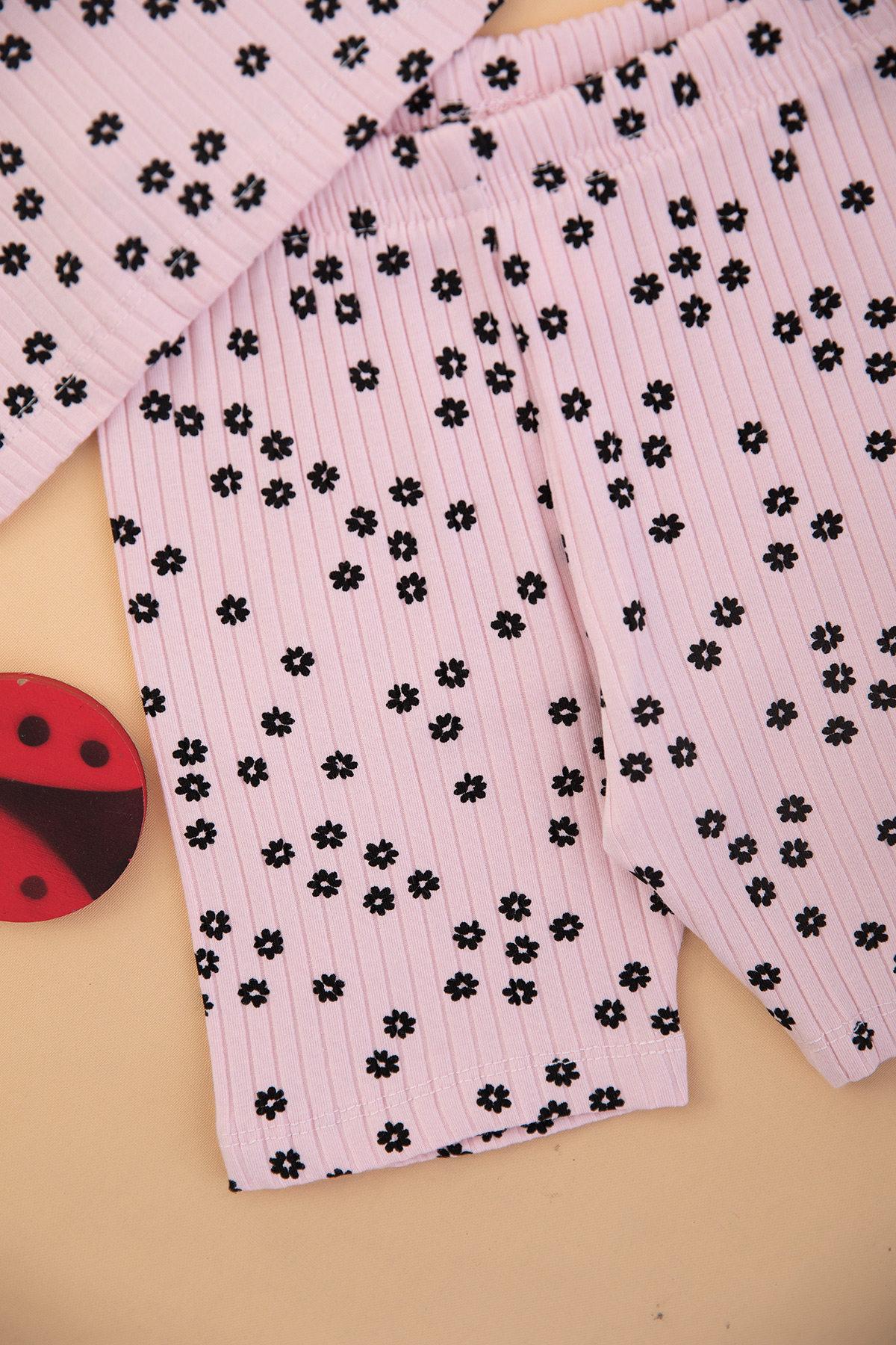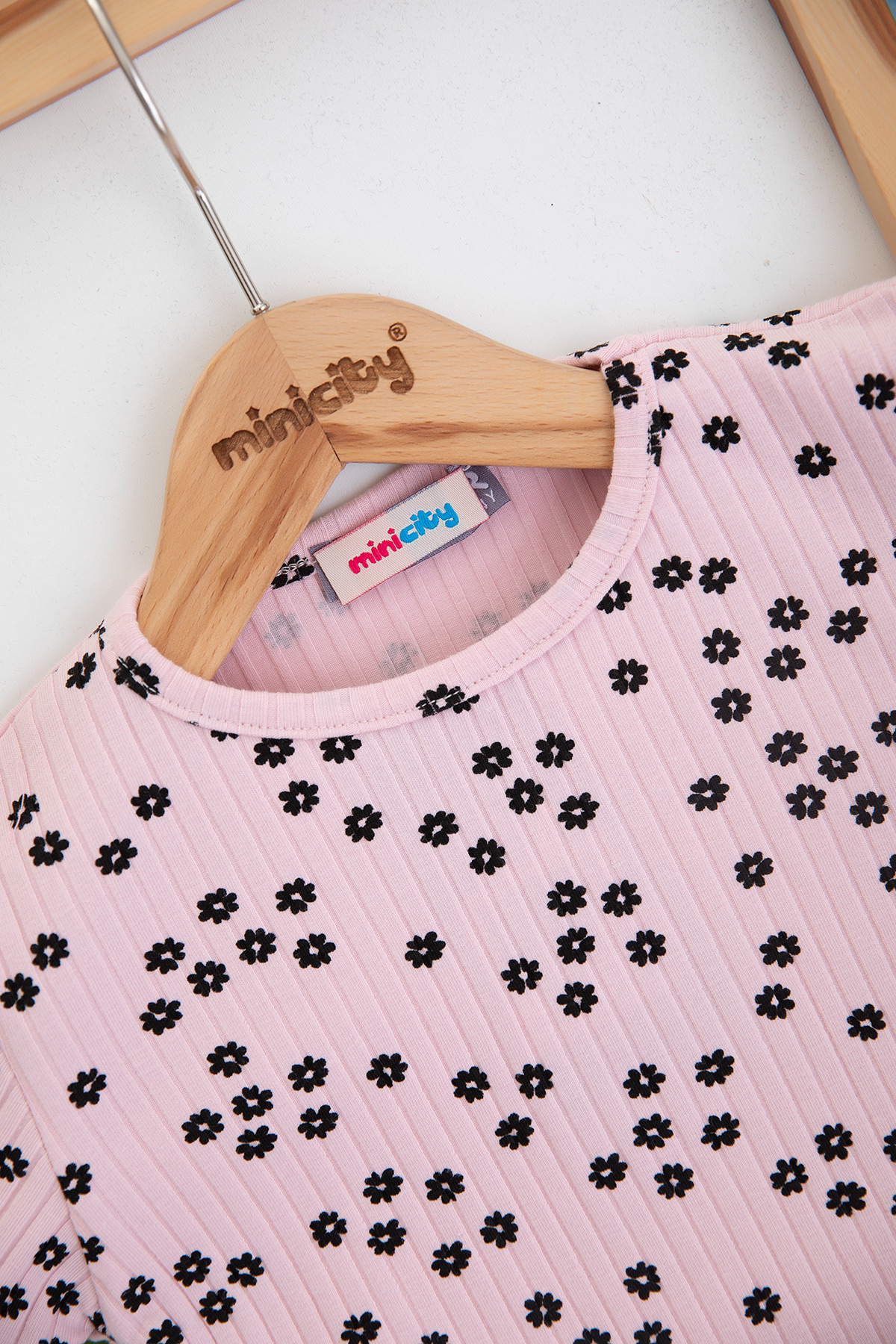 Kız Çocuk Kalın Fitilli Çiçekli Şortlu Takım - 3829 (3-8 Yaş)