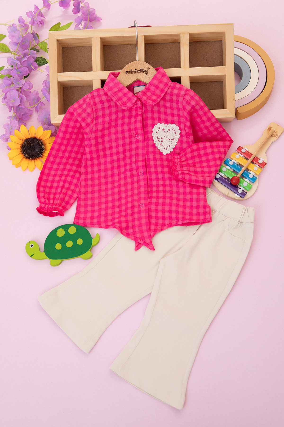 Kız Çocuk Kalp Aksesuarlı Takım - 25019 (3-6 Yaş)