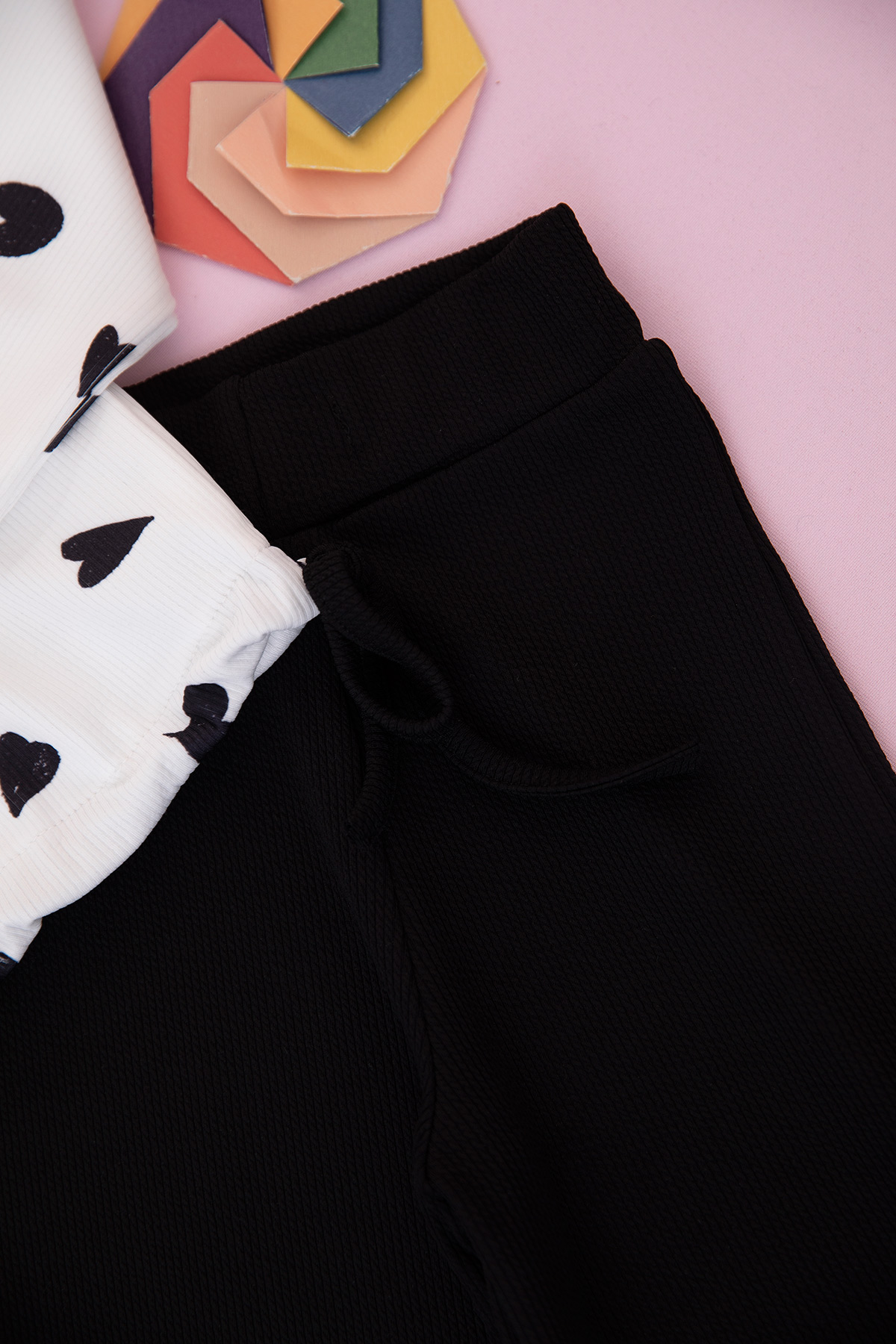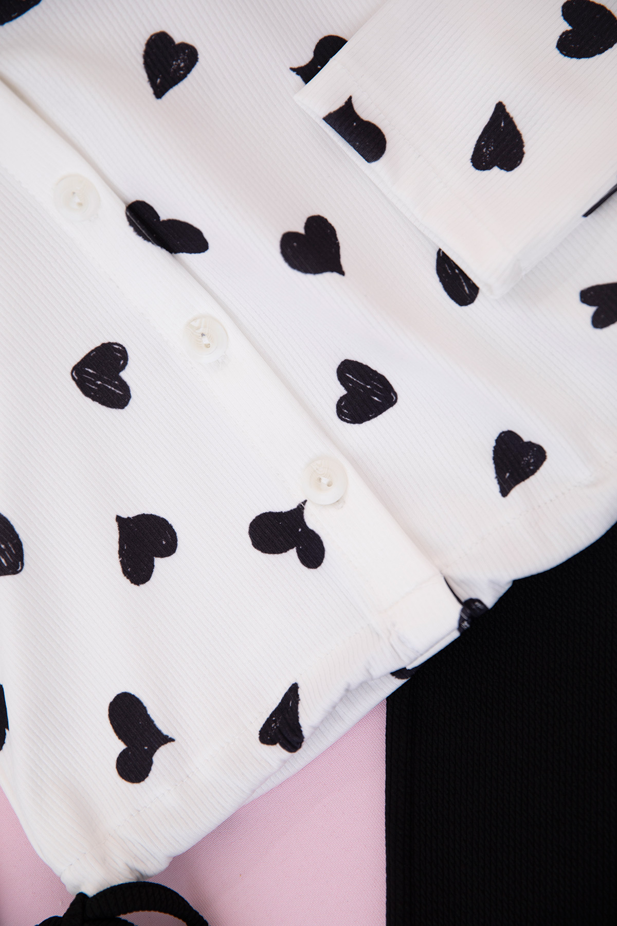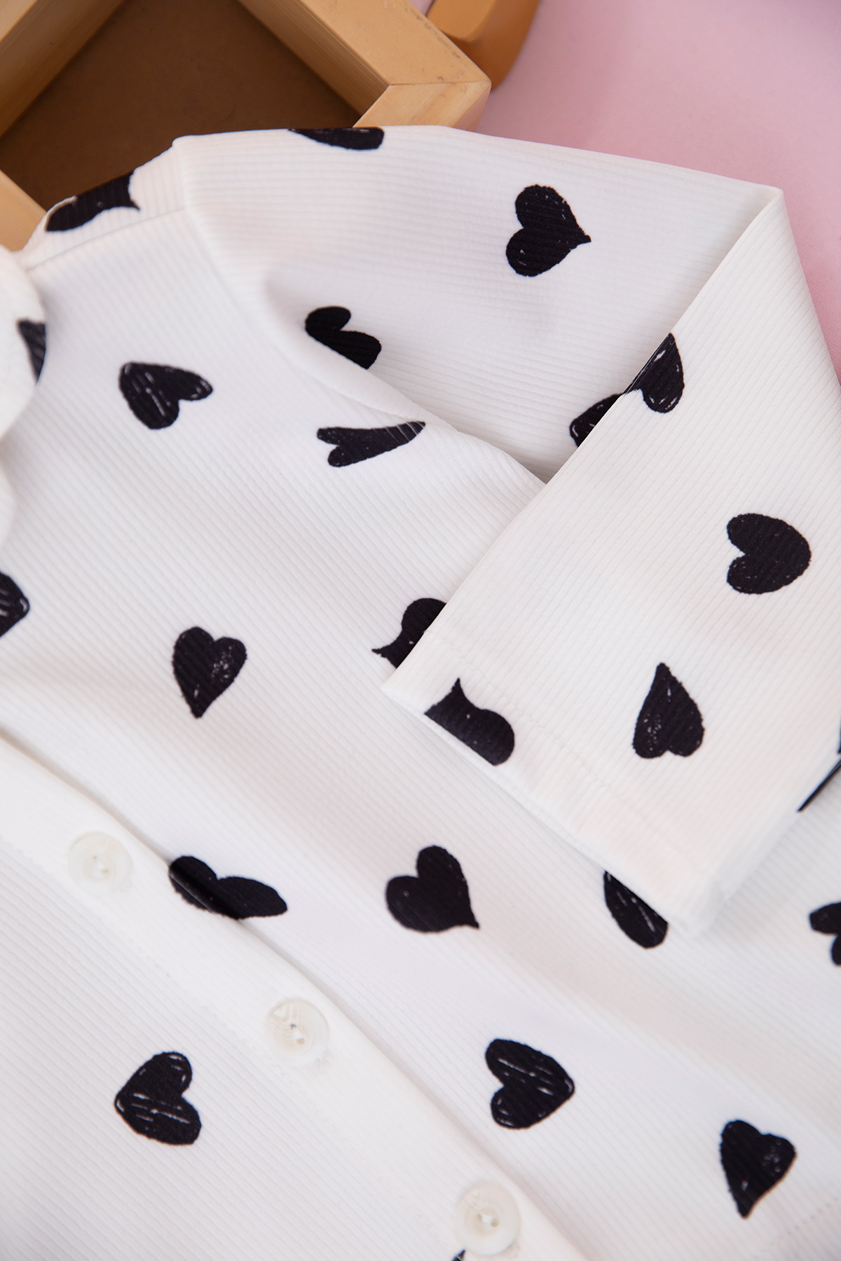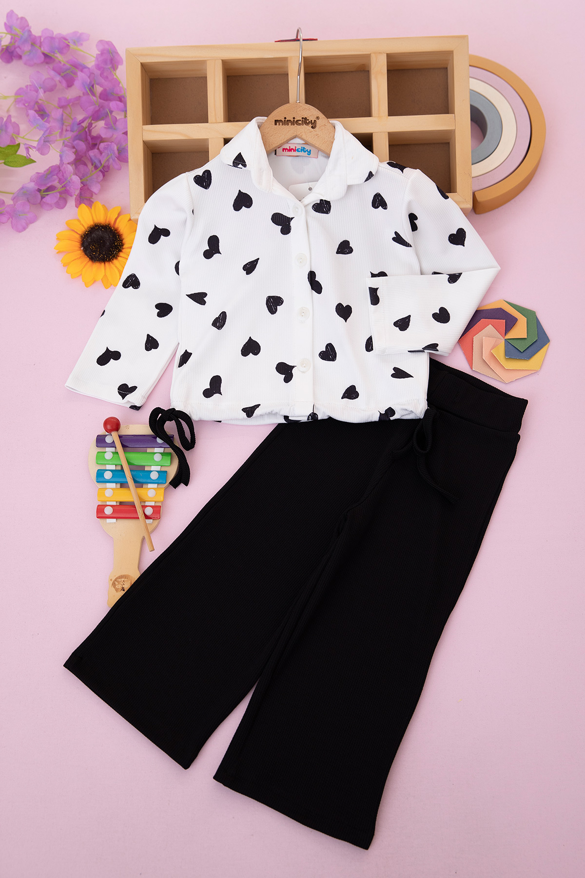 Kız Çocuk Kalp Baskılı Bağlamalı Gömlek Takım (3-6 Yaş)