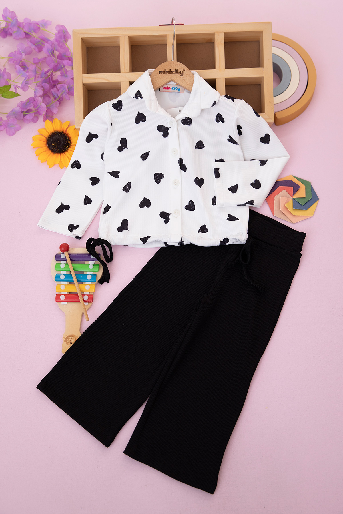 Kız Çocuk Kalp Baskılı Bağlamalı Gömlek Takım (7-10 Yaş)