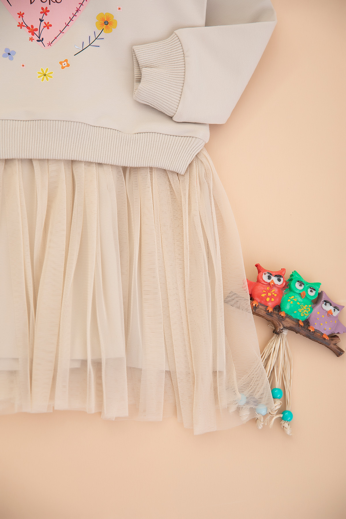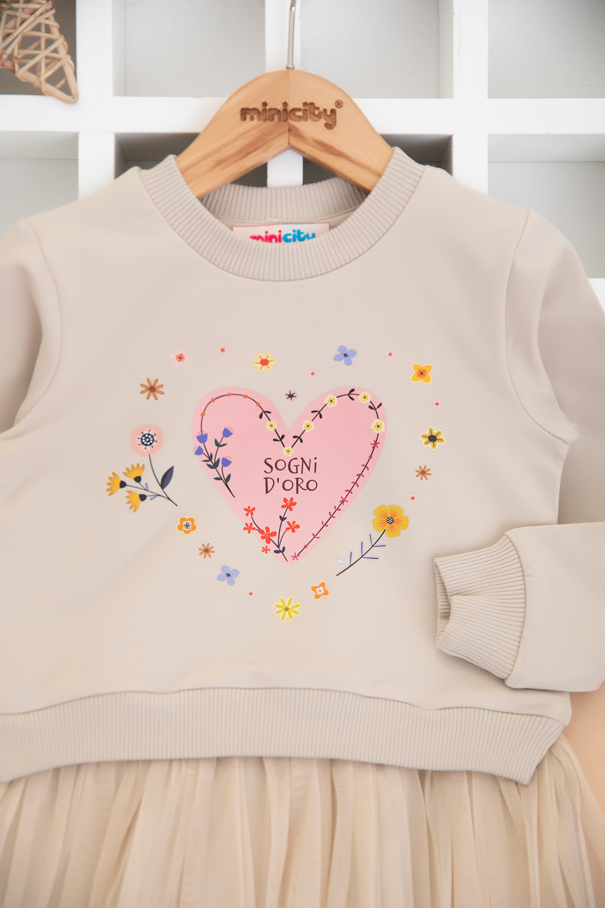 Kız Çocuk Kalp Baskılı Elbise - 7731 (3-7 Yaş)